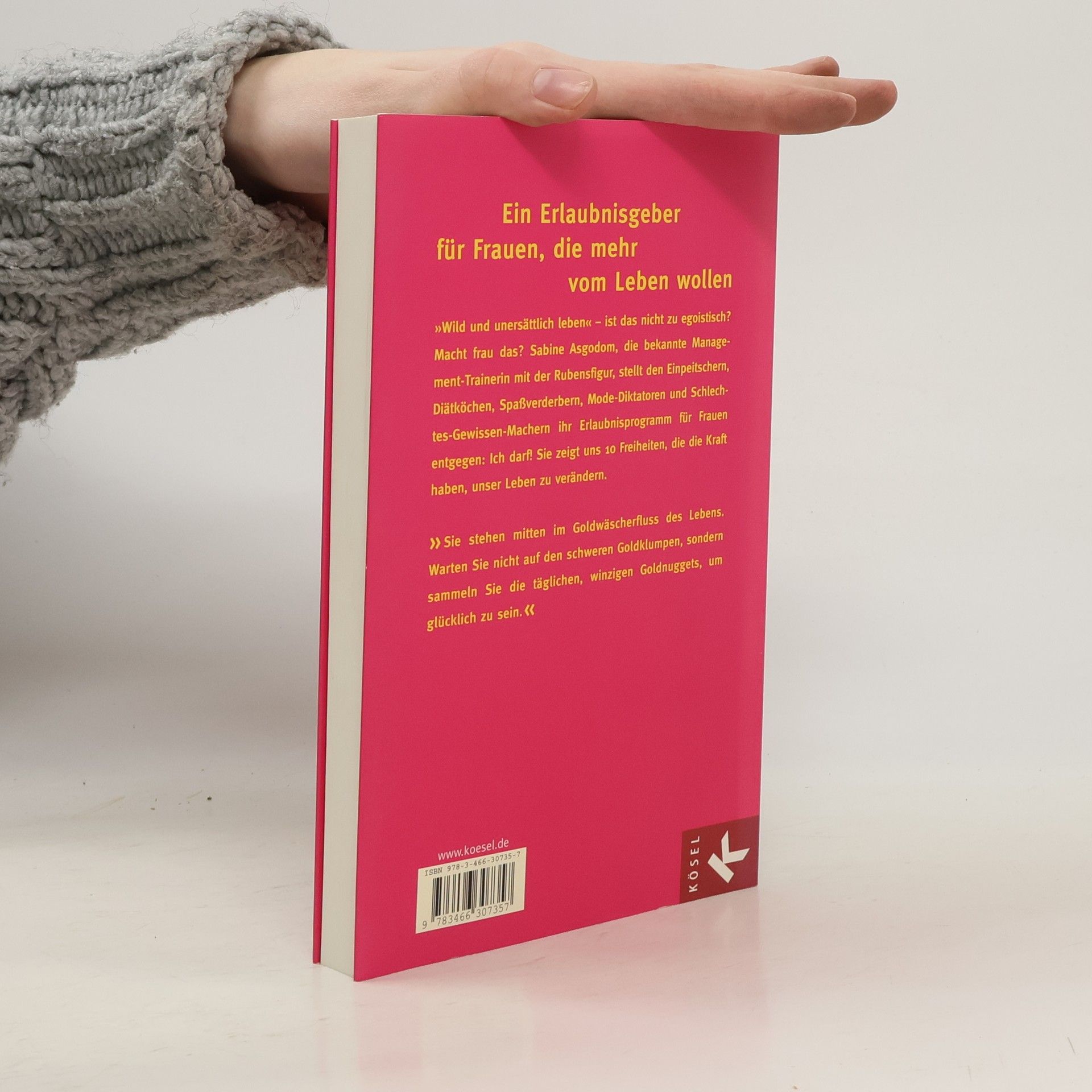 Ein Erlaubnisgeber für Frauen, die mehr vom Leben wollen Schluss mit dem Trendterror und der ständigen Verunsicherung. Schluss mit dem Vermiesen und Verbieten, mit dem Verkleiden und Verbiegen. Sabine Asgodom, die bekannte Management-Trainerin mit der Rubensfigur, stellt den Einpeitschern, Diätköchen und Schlechtes-Gewissen-Machern ihr Erlaubnis-Programm für Frauen entgegen: Du darfst! »Sei du selbst und hab Spaß dabei« – lautet die Botschaft ihres neuen Buches, das das Leben vieler Frauen verändern wird. Es gibt keine Autorität, die uns vorschreiben kann, wie wir zu leben haben. »Sei du selbst und hab Spaß dabei!« lautet die Botschaft von Deutschlands bekanntester Management-Trainerin Sabine Asgodom. Ihr neues Erlaubnisprogramm für Frauen heißt: Du darfst.