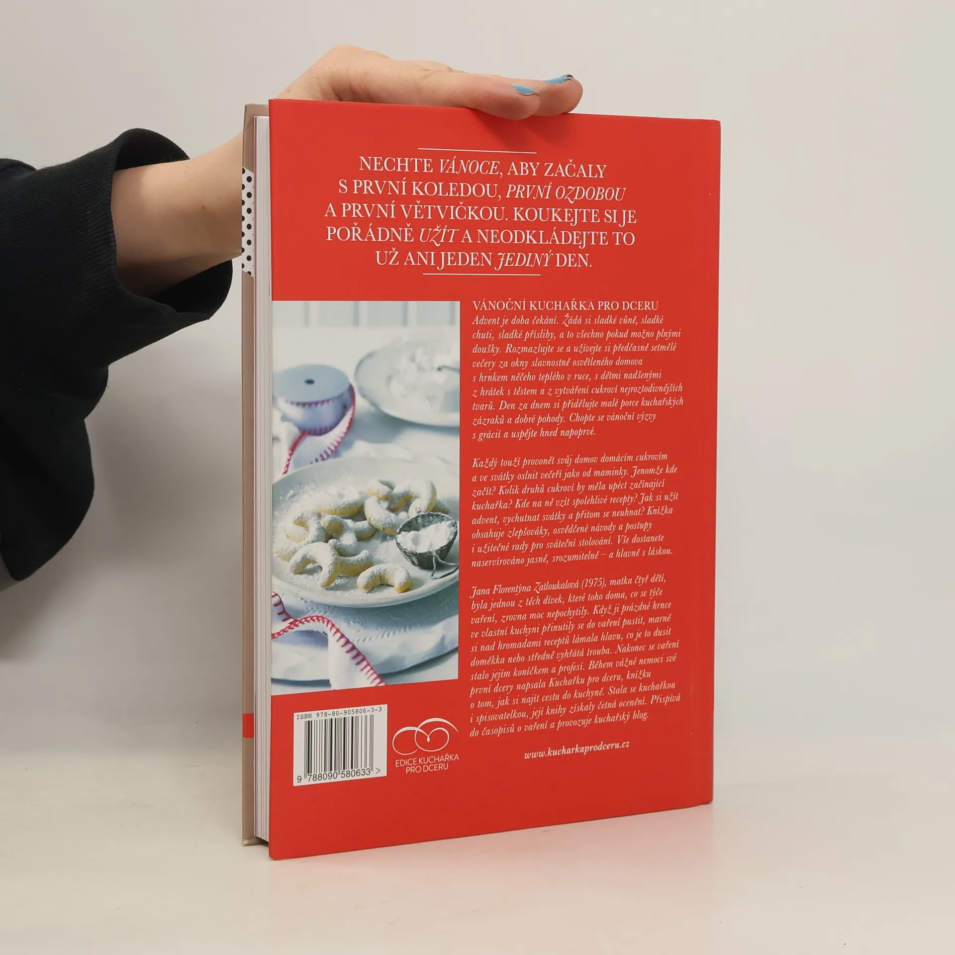 Návod na přežití prvních samostatných Vánoc a zdokonalení všech dalších. Přes 80 receptů vás provede adventem do nového roku. Užijte si Vánoce s první koledou, ozdobou a větvičkou. Tato kuchařka je ideální pro ty, kteří chtějí oslnit domácím cukrovím a sváteční večeří. Kde začít? Kolik druhů cukroví upéct? Kde najít spolehlivé recepty? Jak si užít advent a svátky bez stresu? Kniha nabízí osvědčené návody, tipy na sváteční stolování a praktické rady. Vše je podáno jasně a s láskou. Advent je čas sladkých vůní a chutí, který si zasloužíte vychutnat naplno. Rozmazlujte se a užívejte si kouzlo předvánočních večerů s rodinou, tvořte cukroví nejrůznějších tvarů a užívejte si malé kuchařské zázraky. Chopte se vánoční výzvy s grácií a uspějte hned napoprvé. Autorka, zkušená kuchařka, dovedla do kuchyně tisíce žen a dívek a naučila je vařit s láskou a radostí. Pokud vám v kuchyni chybí sebevědomí, vášeň nebo inspirace, tato kniha vám to přinese.