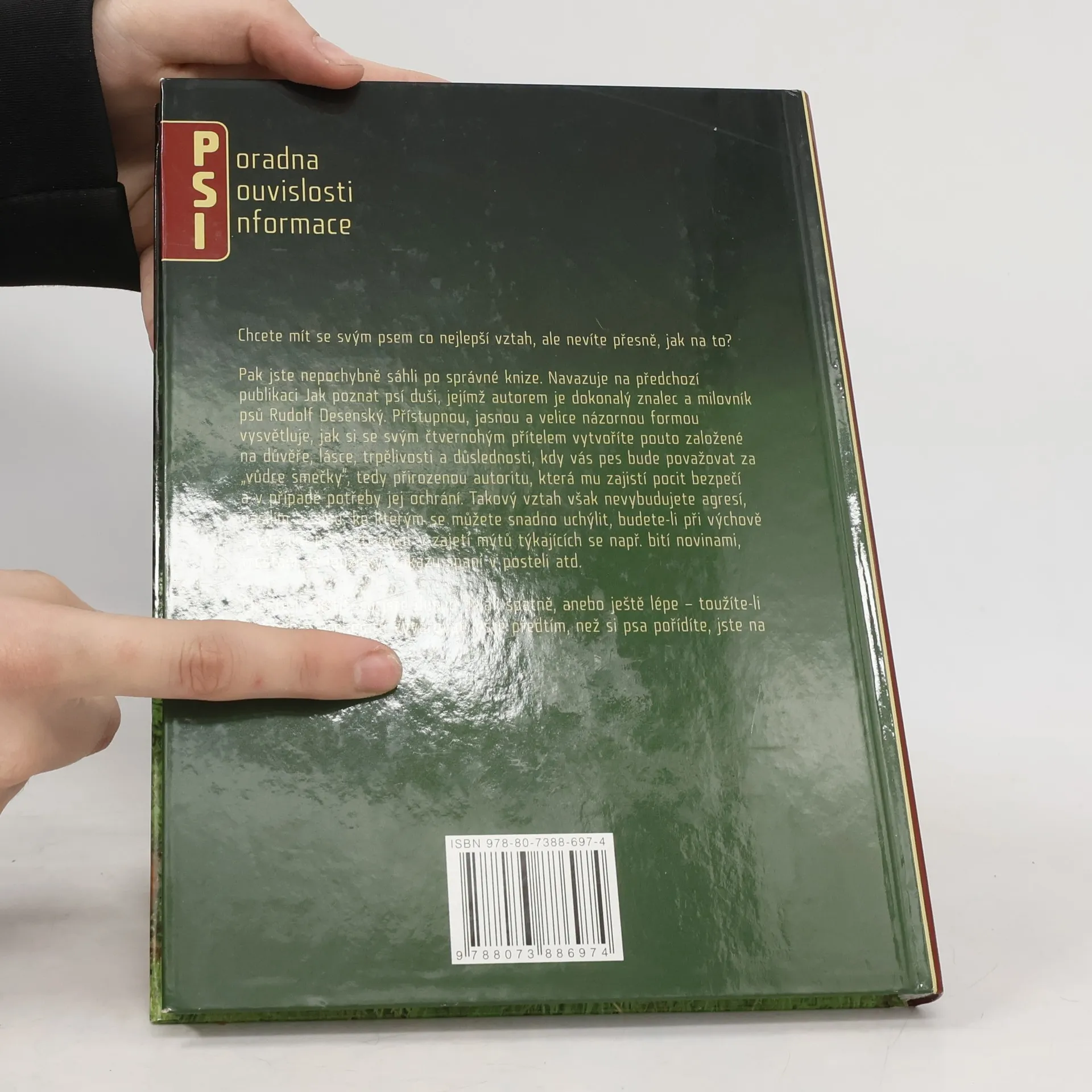 Chcete mít se svým psem co nejlepší vztah, ale nevíte přesně, jak na to? Pak jste nepochybně sáhli po správné knize. Navazuje na předchozí publikaci Jak poznat psí duši, jejímž autorem je dokonalý znalec a milovník psů Rudolf Desenský. Přístupnou, jasnou a velice názornou formou vysvětluje, jak si se svým čtvernohým přítelem vytvoříte pouto založené na důvěře, lásce, trpělivosti a důslednosti, kdy vás pes bude považovat za „vůdce smečky“, tedy přirozeno autoritu, která mu zajistí pocit bezpečí a v případě potřeby jej ochrání. Takový vztah však nevybudujete agresí, násilím a silou, ke kterým se můžete snadno uchýlit, budete-li při výchově a výcviku psa setrvávat v zajetí mýtů týkajících se např. bití novinami, trestání za loužičky, zákazu spaní v posteli atd. nakladatel XYZ rok vydání 2012 vydání 2. vyd. místo Praha stran 243 rozměry 23 cm poznámka il. ISBN 978-80-7388-697-4