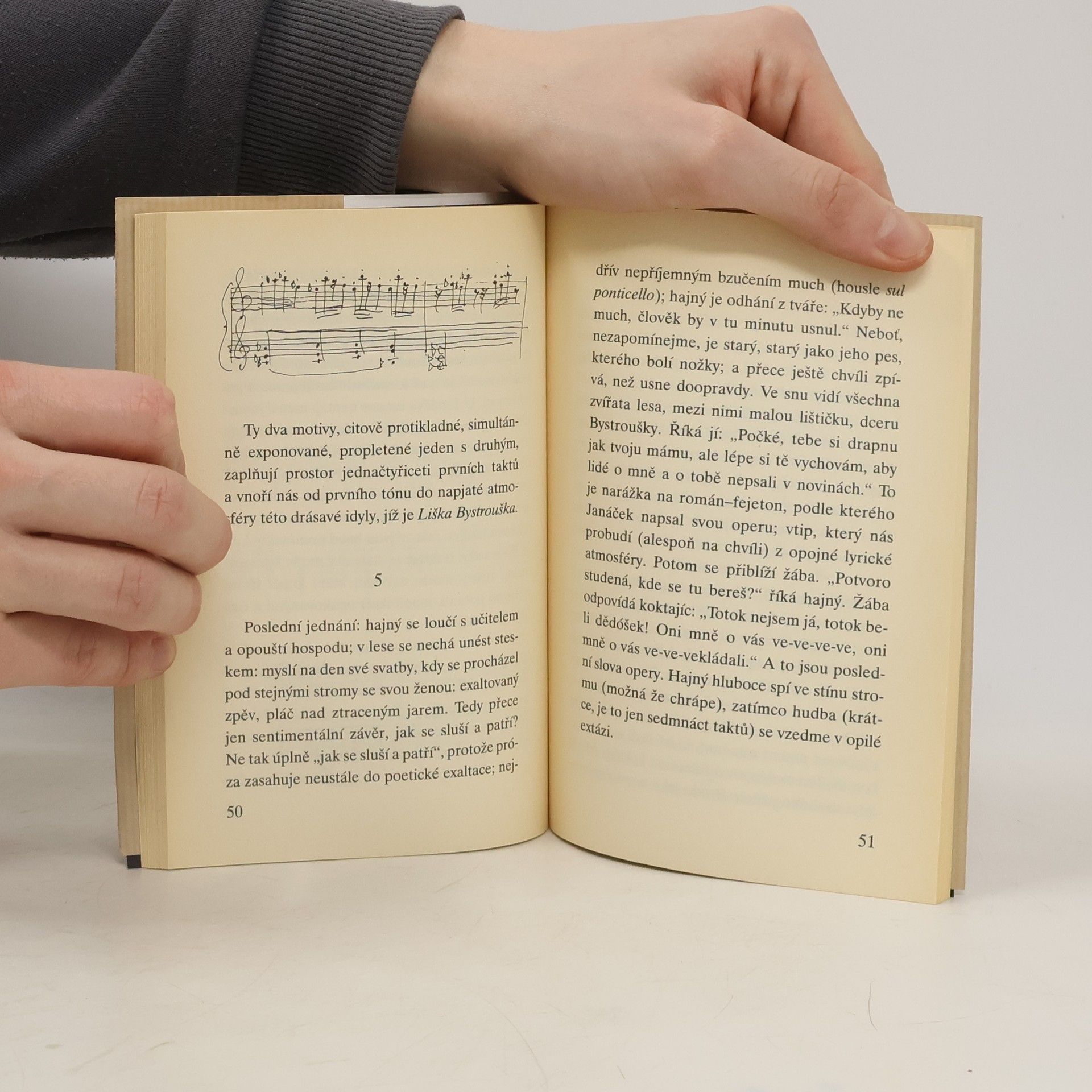 Svazek obsahuje tři Kunderovy texty o Janáčkovi, které vznikly ve Francii mezi rokem 1991 a 2004. V třetím textu (záznamu rozhlasového rozhovoru, který vysílal Český rozhlas 3 – Vltava dne 3. července 2004) formuluje Kundera základní otázku: Je Janáček „jen zajímavým skladatelem jakéhosi exotického koutu Evropy, anebo jedním z tvůrců moderní světové hudby“? Tato otázka podle Kundery provází Janáčkovo dílo jako jeho úděl a prosvítá za všemi texty: v prvním z nich, Hledání přítomného času, je Janáčkova opera srovnávána s úsilím Flauberta a Hemingwaye uchopit „prózu života“ a její „přítomný čas“; v druhém, Liška Bystrouška, drásavá idyla, je Janáček řazen k velkým osamělým antiromantikům Střední Evropy; v posledním, Nepravděpodobný osud (rozhovor s Tomášem Sedláčkem), je Janáčkův osud konfrontován s největšími skladateli moderní hudby, od Schönberga ke Stravinskému.