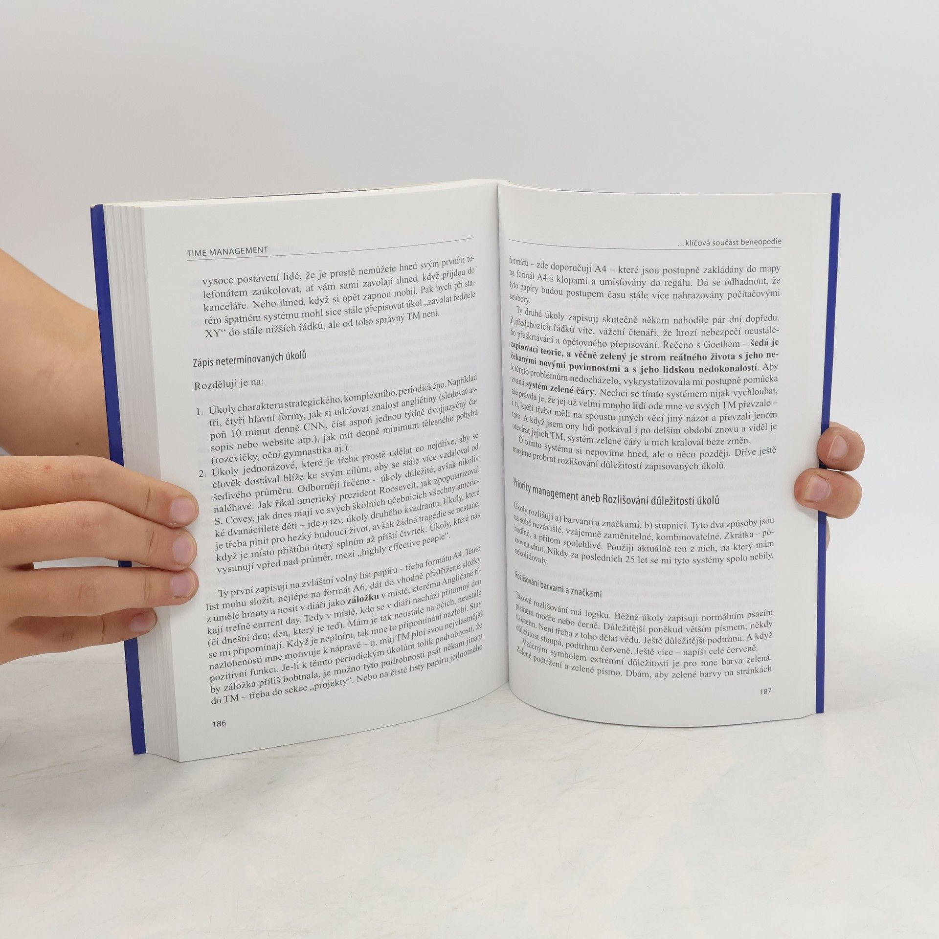 Pozdní příchody, přesouvání pracovních schůzek, odkládání či dokonce neplnění pracovních úkolů, vyrušování sebe i druhých, to vše patří v současné době mezi "nešvary" způsobující zbytečné stresy a konflikty. Příručka efektivního hospodaření s časem z dílny zkušeného lektora přináší zasvěcené rady, jak si stanovit priority a šetřit čas při obchodních jednáních, týmové komunikaci či při studiu, jak si zkrátka čas efektivně naplánovat a těmto nedostatkům se vyhnout. Autor rovněž zdůrazňuje nutnost dostatečné relaxace a plánovitého využívání volného času. Nové vydání knihy posouvá dovednosti efektivního time managementu na úroveň vyšší generace v duchu nového komplexního oboru, tzv. beneopedie, vědní disciplíny o tom, jak dobře a úspěšně pracovat a vůbec žít.