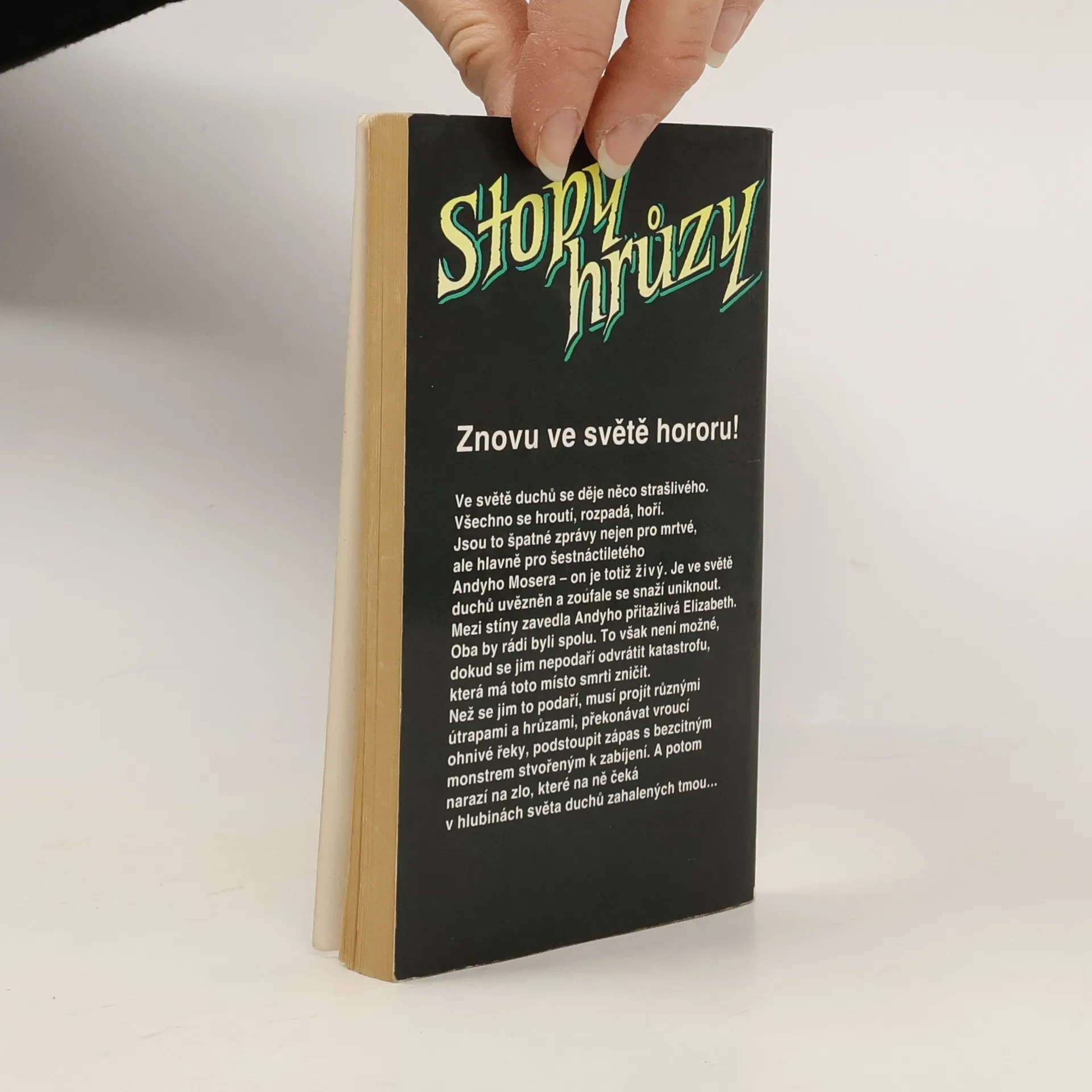 Ve světě duchů se děje něco strašlivého. Všechno se hroutí,rozpadá, hoří. Jsou to špatné zprávy nejen pro mrtvé, ale hlavně pro šestnáctiletého Andyho Mosera – on je totiž živý. Je ve světě duchů uvězněn a zoufale se snaží uniknout. Mezi stíny zavedla Andyho přitažlivá Elizabeth. Oba by rádi byli spolu. To však není možné, dokud se jim nepodaří odvrátit katastrofu, která má toto místo smrti zničit. Než se jim to podaří, musí projít různými útrapami a hrůzami, překonávat vroucí ohnivé řeky, podstoupit zápas s bezcitným monstrem stvořeným k zabíjení. A potom narazí na zlo, které na ně čeká v hlubinách světa duchů zahalených tmou…... celý text
