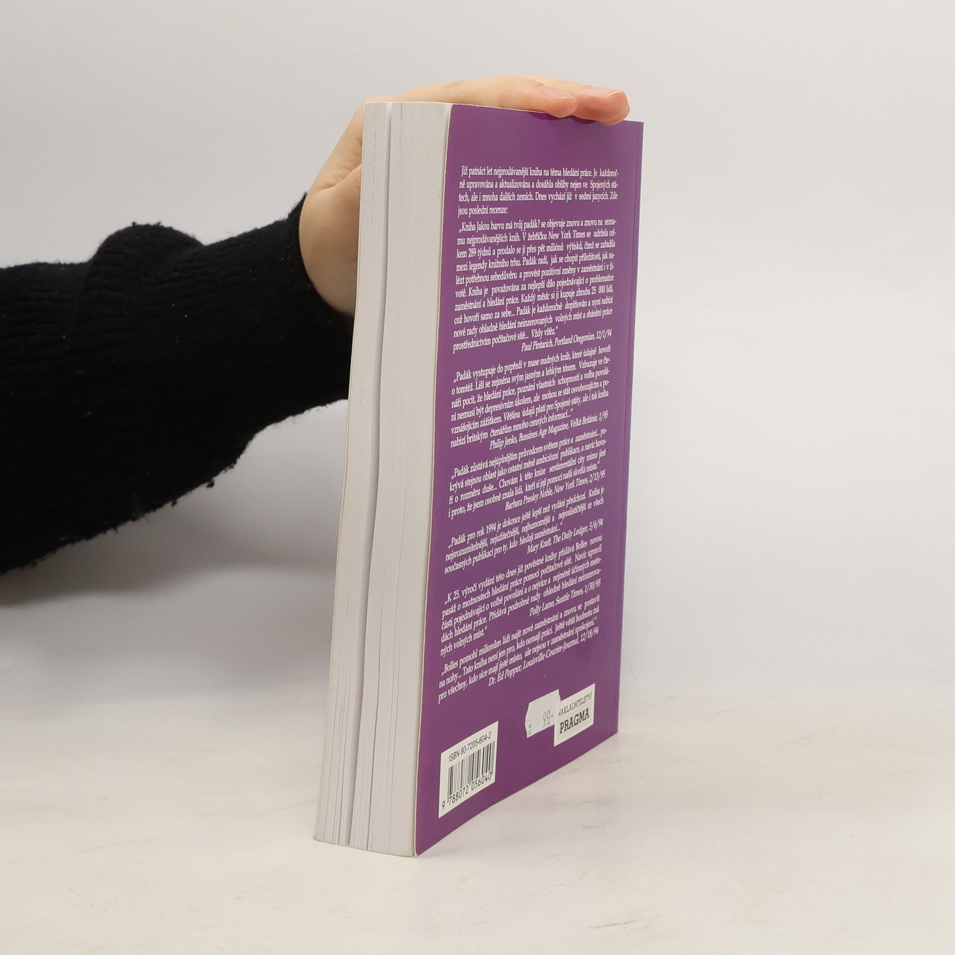 Praktický manuál, jak si najít práci a novou kariéru Kniha Jaké barvy je tvůj padák se pravidelně objevuje na žebříčku nejprodávanějších titulů a to nejen ve Spojených státech, ale i v Evropě. Popisuje a osvětluje pět nejúčinnějších metod, jak najít práci - krok za krokem, od prvních kontaktů přes přijímací pohovor až po vyjednávání o platu. Pomocí nejrůznějších testů si rovněž čtenář může ověřit své schopnosti či zjistit, v jakém oboru by se nejlépe uplatnil. Zároveň je zde množství praktických rad, jak získat sebedůvěru a vyhnout se depresi, která období nezaměstnanosti často provází. Kniha je plná vtipných příběhů a ilustrací. Dodává potřebnou odvahu a chuť vrhnout se na trh práce.