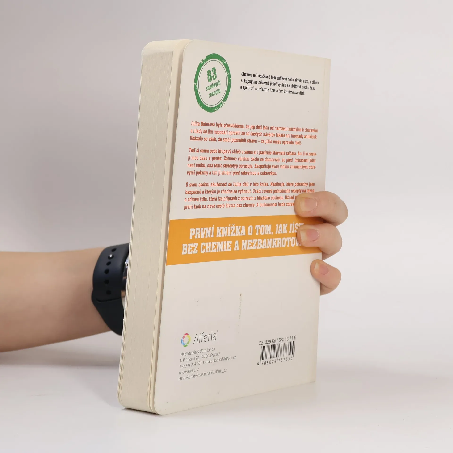 Julita Batorová si myslela, že její děti nedokáže nic úplně uzdravit a že se nikdy nezbaví alergií a častého užívání antibiotik. Ale ukázalo se, že stačí změnit stravu: jídlo může skutečně léčit! Teď si sama peče chléb i krájí šťavnatá rajčata. Nezabere jí to až tak moc času, ani to moc nestojí. Zatímco všichni kolem zastávají názor, že „produktům jídlupodobným“ se nedá uniknout, Julita tento stereotyp boří. Vaří své rodině chutně a zdravě, a tím i zajišťuje nejlepší prevenci před rakovinou nebo cukrovkou. O své zkušenosti se Julita dělí v této knížce. Vysvětluje, které produkty jsou bezpečné a kterých je lepší se vyvarovat. Sdílí recepty na nenákladná a zdravá jídla, která můžete uvařit z produktů dostupných v nejbližším obchodě. Teď hned se můžete vydat na cestu jezení bez chemie.
