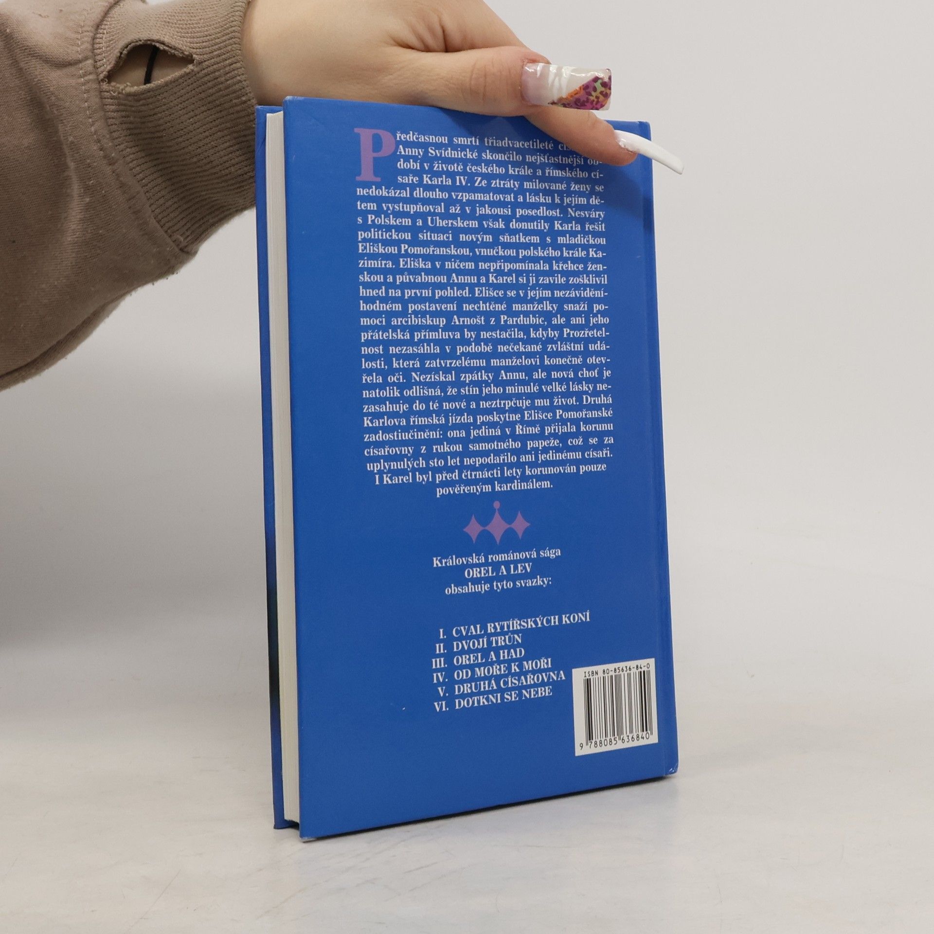 Pátý díl šestidílné románové ságy o Karlu IV. a jeho době. Předčasná smrt třiadvacetileté Anny Svídnické zasáhla Karla nejkrutěji jako manžela i milence. Ze ztráty milovné ženy se nedokázal dlouho vzpamatovat a svoji čtvrtou manželku Elišku Pomořanskou si nespravedlivě ošklivil. Teprve prozřetelnost otevřela zatvrzelému manželovi oči. Nezískal zpátky Annu, ale nová choť je natolik odlišná, že stín jeho minulé velké lásky nezasahuje do té nové. Druhá Karlova římská jízda poskytne Elišce zadostiučinění: ona jediná v Římě přijala korunu císařovny z rukou samotného papeže, což se za uplynulých sto let nepodařilo ani jedinému císaři.... celý text