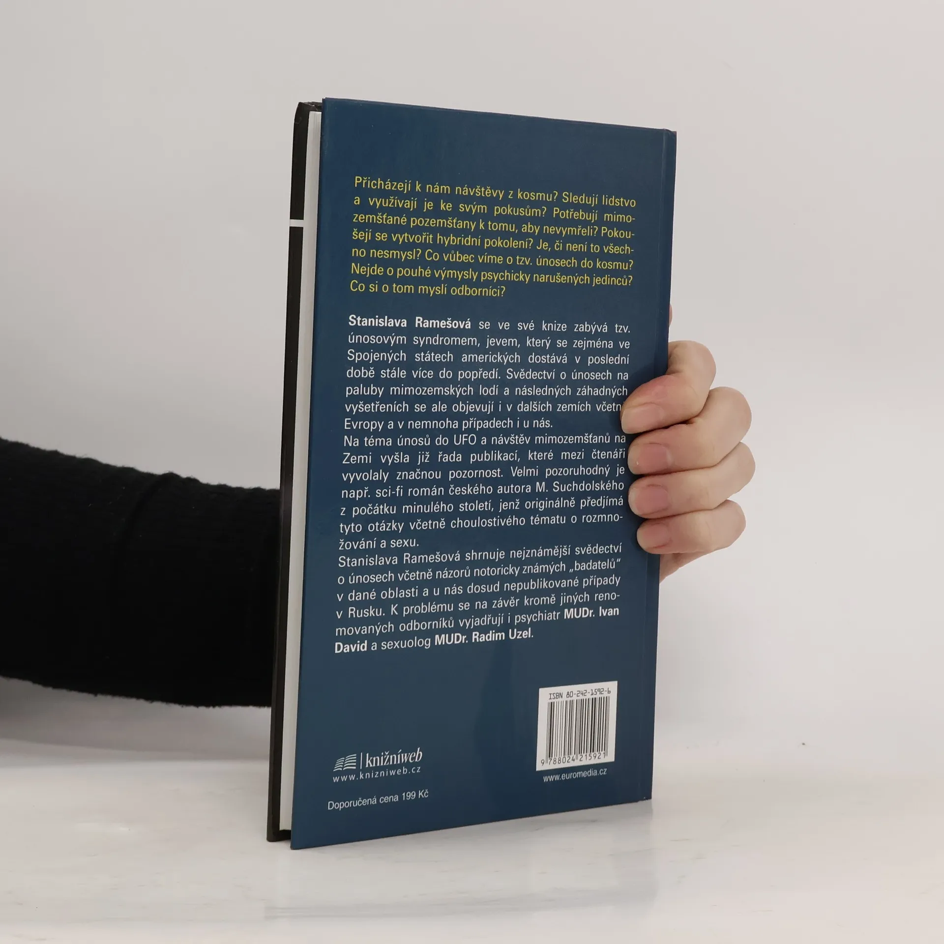 Přicházejí k nám návštěvy z kosmu? Sledují lidstvo a využívají je ke svým pokusům? Co víme o těch, které údajně mimozemšťané unesli a vrátili na Zemi? Stanislava Ramešová se ve své publikaci zabývá únosovým syndromem, jevem, který v poslední době nabírá na významu, zejména ve Spojených státech. Mnozí lidé tam věří, že byli uneseni mimozemšťany, a přinášejí různé důkazy. Podobné přesvědčení mají i lidé v Rusku a České republice. Na téma únosů do UFO a setkání s mimozemšťany existuje řada publikací, například od Ericha von Dänikena a dalších autorů, kteří mají své stoupence i v Česku. Také český sci-fi román M. Suchdolského se zabývá otázkami spojenými s těmito jevy, včetně témat rozmnožování a sexuality. Ramešová shromáždila výpovědi „unesených“ a do diskuse zapojila renomované odborníky, psychiatra MUDr. Ivana Davida a sexuologa MUDr. Radima Uzla, čímž poskytuje komplexní pohled na tento fascinující a kontroverzní fenomén.