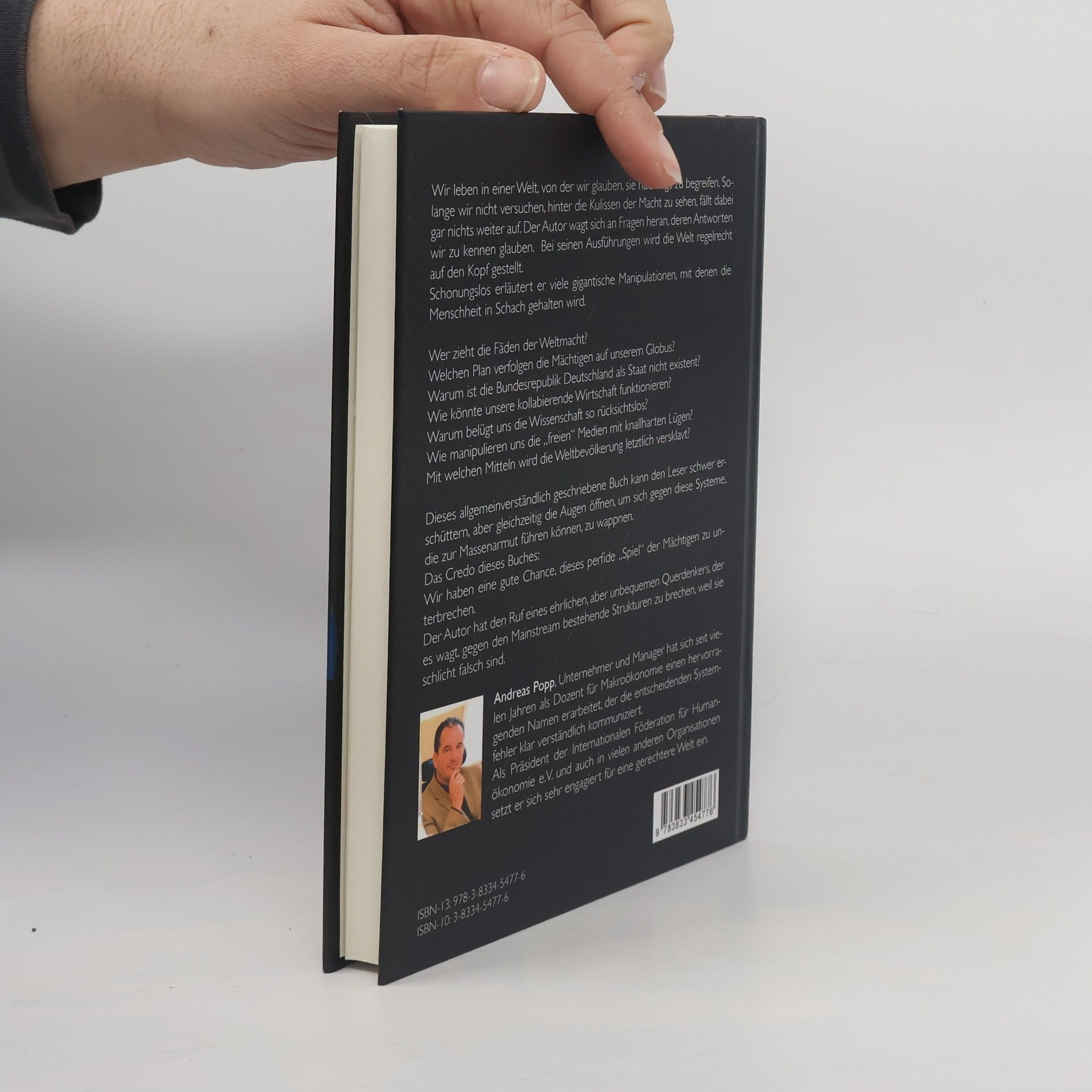 Wir leben in einer Welt, von der wir glauben, sie halbwegs zu begreifen. Solange wir nicht versuchen, hinter die Kulissen der Macht zu sehen, fällt dabei gar nichts weiter auf. Der Autor wagt sich an Fragen heran, deren Antworten wir zu kennen glauben. Bei seinen Ausführungen wird die Welt regelrecht auf den Kopf gestellt. Schonungslos erläutert er viele gigantische Manipulationen, mit denen die Menschheit in Schach gehalten wird. Wer zieht die Fäden der Weltmacht? Welchen Plan verfolgen die Mächtigen auf unserem Globus? Warum ist die Bundesrepublik Deutschland als Staat nicht existent? Wie könnte unsere kollabierende Wirtschaft funktionieren? Warum belügt uns die Wissenschaft so rücksichtslos? Wie manipulieren uns die „freien“ Medien mit knallharten Lügen? Mit welchen Mitteln wird die Weltbevölkerung letztlich versklavt? Dieses allgemeinverständlich geschriebene Buch kann den Leser schwer erschüttern, aber gleichzeitig die Augen öffnen, um sich gegen diese Systeme, die zur Massenarmut führen können, zu wappnen. Das Credo dieses Buches: Wir haben eine gute Chance, dieses perfide „Spiel“ der Mächtigen zu unterbrechen. Der Autor hat den Ruf eines ehrlichen, aber unbequemen Querdenkers, der es wagt, gegen den Mainstream bestehende Strukturen zu brechen, weil sie schlicht falsch sind.