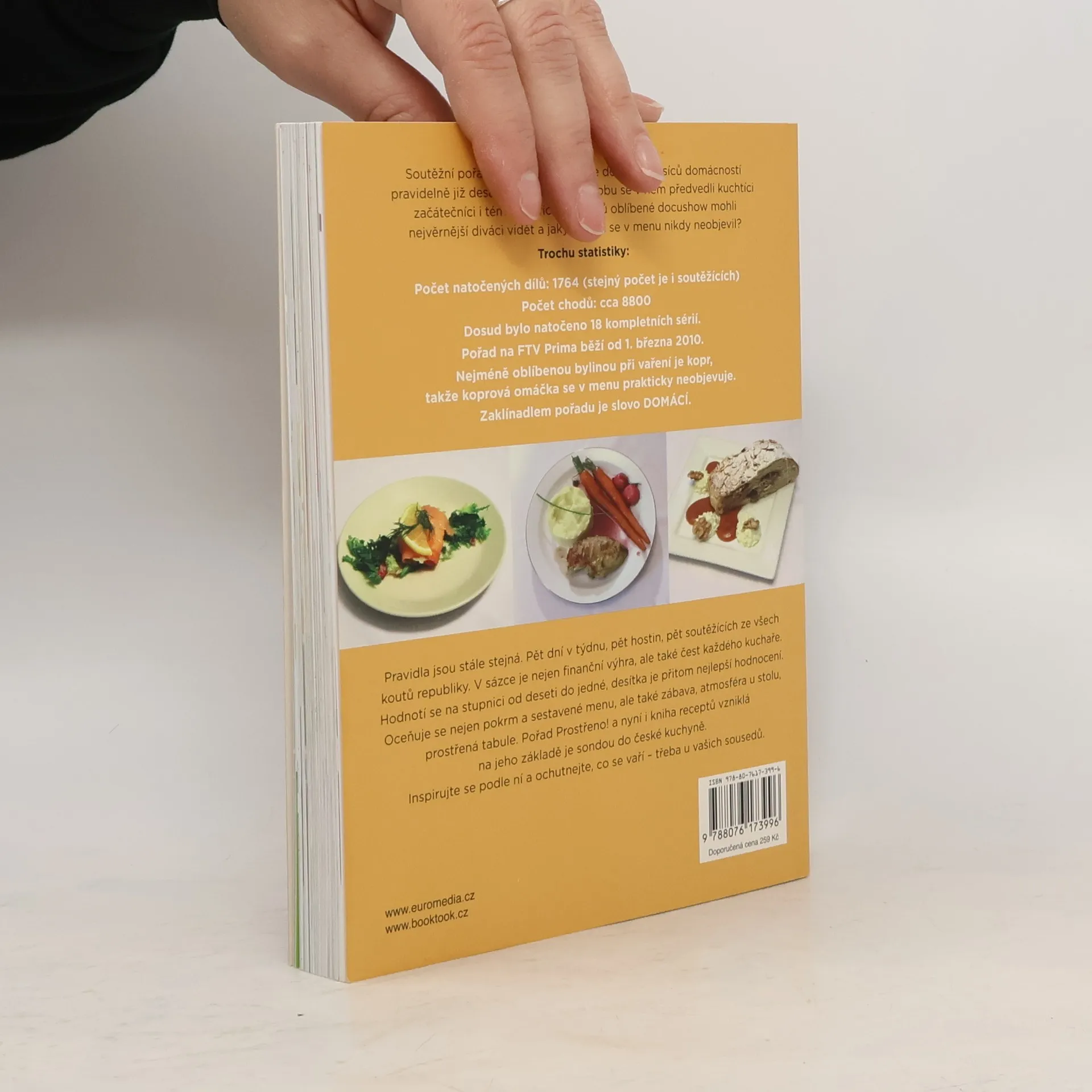 100 rodinných receptů připravených s láskou k jídlu Soutěžní pořad Prostřeno! vstupuje do stovek tisíců domácností pravidelně již desátým rokem. Za tu dobu se v něm předvedli kuchtíci začátečníci i téměř profíci, kteří si byli v počátku soutěžení prakticky jisti svou výhrou. Jenže se zadařilo jen zlomku z nich. Pravidla jsou stále stejná. Pět dní, pět hostin, pět soutěžících ze všech koutů republiky. V sázce je nejen finanční výhra, ale také čest každého kuchaře. Pořad Prostřeno! a nyní i kniha receptů vzniklých na jejich základě je sondou do české kuchyně. Uvařte si podle ní a ochutnejte, co se vaří – třeba u vašich sousedů.