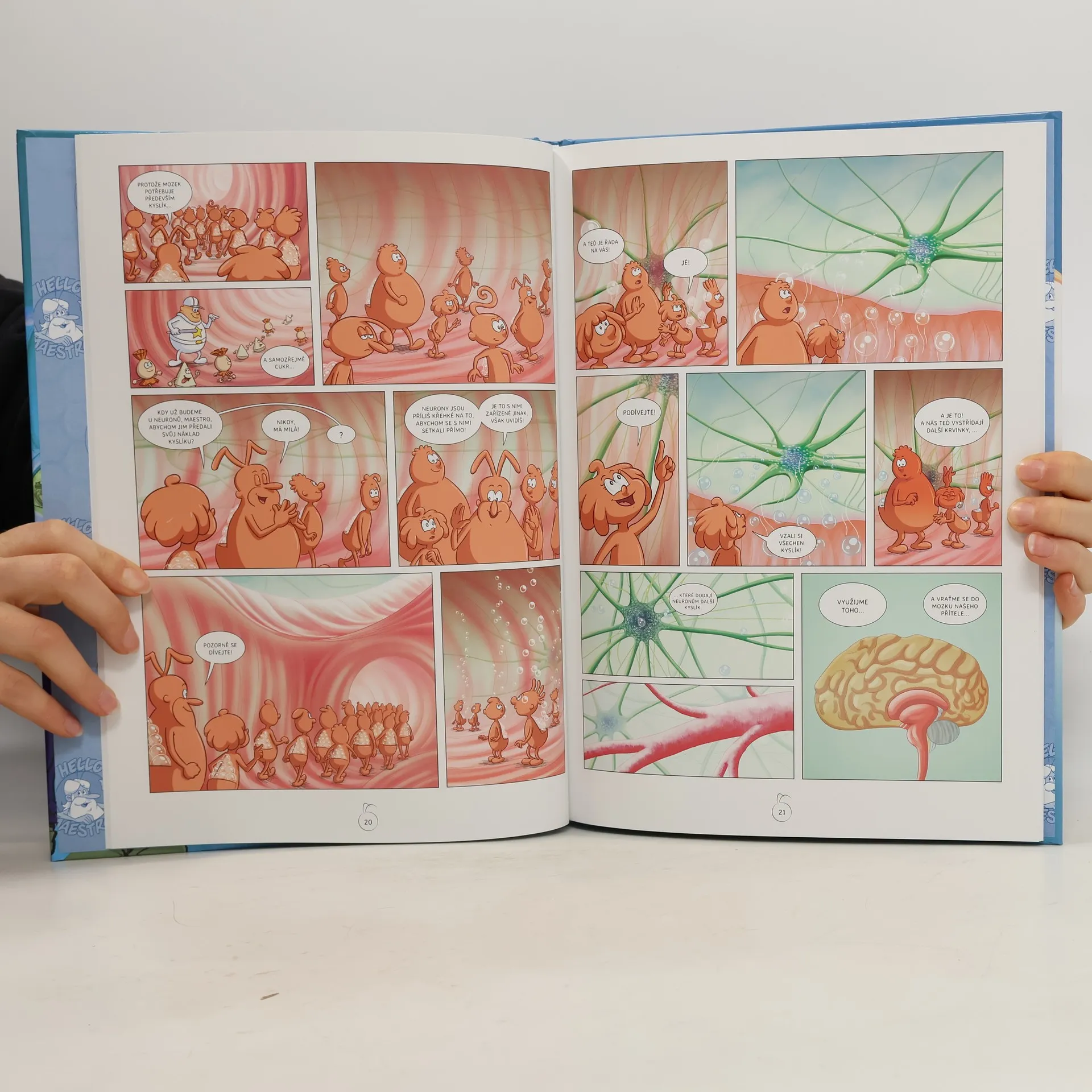 Komiksové zpracování kultovního animovaného seriálu! Vydejte se spolu s Maestrem a jeho přáteli do hlubin lidského těla. Sledujte, jak bojují s viry a bakteriemi a starají se o to, aby zůstalo zdravé a šlapalo jako hodinky. Objevte, jak funguje nejdokonalejší počítač na světě – lidský mozek. Seznámíte se s neurony – mozkovými buňkami –, které mají funkci poslů a rychlostí blesku doručují pokyny z mozku do celého těla. Víte, že kdybyste všechny neurony poskládali na sebe, dosáhly by až na Měsíc? Cesta do nekonečně malého, avšak naprosto vzrušujícího světa, právě začíná!