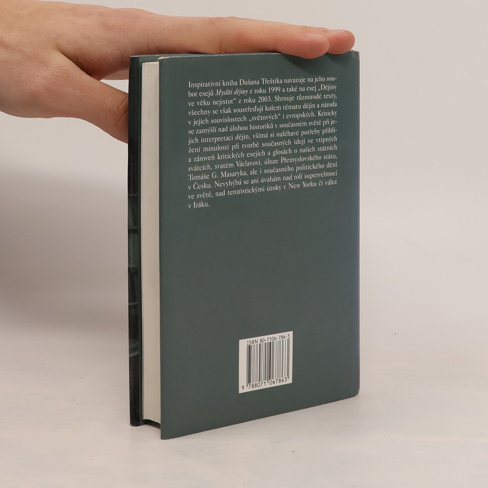 Inspirativní kniha Dušana Třeštíka shrnuje různorodé texty, všechny se však soustřeďují kolem tématu dějin a národa v jejich souvislostech „světových" i evropských. Kriticky se zamýšlí nad úlohou historiků v současném světě při jejich interpretaci dějin, všímá si naléhavé potřeby přiblížení minulosti při tvorbě současných idejí ve vtipných a zároveň kritických esejích a glosách o našich státních svátcích, svatém Václavovi, úloze Přemyslovského státu, Tomáše G. Masaryka, ale i současného politického dění v Česku. Nevyhýbá se ani úvahám nad rolí supervelmocí ve světě, nad teroristickými útoky v New Yorku či válce v Iráku.
