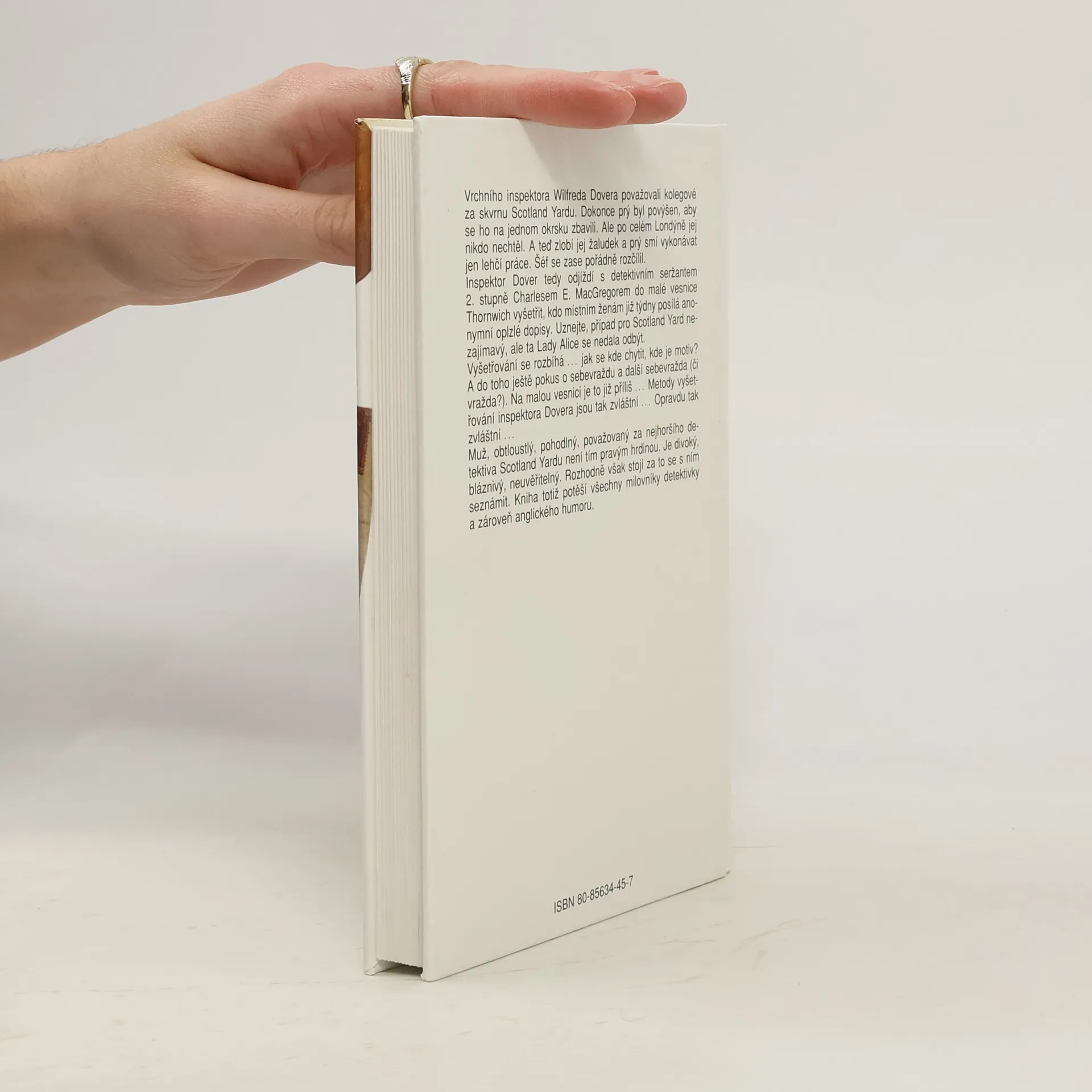 Vrchního inspektora Alfreda Dovera považovali kolegové za skvrnu Scotland Yardu. Dokonce prý byl povýšen, aby se ho na jednom okrsku zbavili. Ale po celém Londýně jej nikdo nechtěl. A teď zlobí jej žaludek a prý smí vykonávat jen lehčí práce. Šéf se zase pořádně rozčílil. Inspektor Dover tedy odjíždí s detektivním seržantem 2. stupně Charlesem E. MacGregorem do malé vesnice Thornwich vyšetřit, kdo místním ženám již týdny posílá anonymní oplzlé dopisy. Uznejte, případ pro Scotland Yard nezajímavý, ale ta Lady Alice se nedala odbýt. Vyšetřování se rozbíhá… jak se kde chytit, kde je motiv? A do toho ještě pokus o sebevraždu(či vražda?). Na malou vesnici je to příliš… Metody vyšetřování inspektora Dovera jsou tak zvláštní… Opravdu tak zvláštní… Muž, obtloustlý, pohodlný, považovaný za nejhoršího detektiva Scotland Yardu není tím pravým hrdinou. Je divoký, bláznivý, neuvěřitelný. Rozhodně však stojí za to se s ním seznámit. Kniha totiž potěší všechny milovníky detektivky a zároveň anglického humoru.... celý text