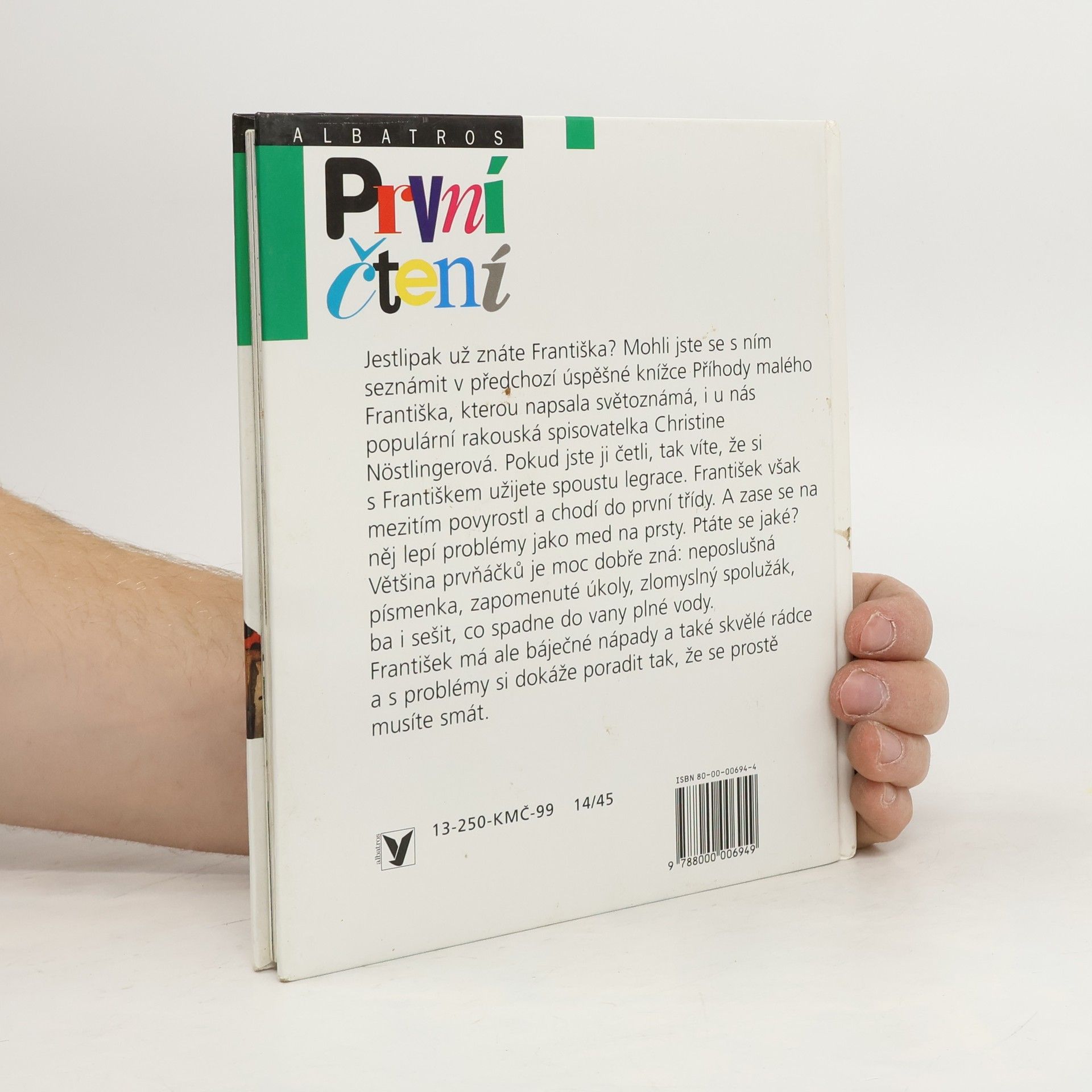 Kniha pro začínající čtenáře přináší další příhody sedmiletého školáka Františka. První třída s sebou přináší řadu povinností, problémů, ale i zábavy. A tak se František musí vypořádat s nezbednými písmenky a číslicemi, se zlomyslným spolužákem i panem učitelem, který mu připadá příliš odměřený a přísný. O tom všem, a ještě mnohem víc, se můžete dočíst v této knížce. Četba vhodná pro začínající čtenáře.