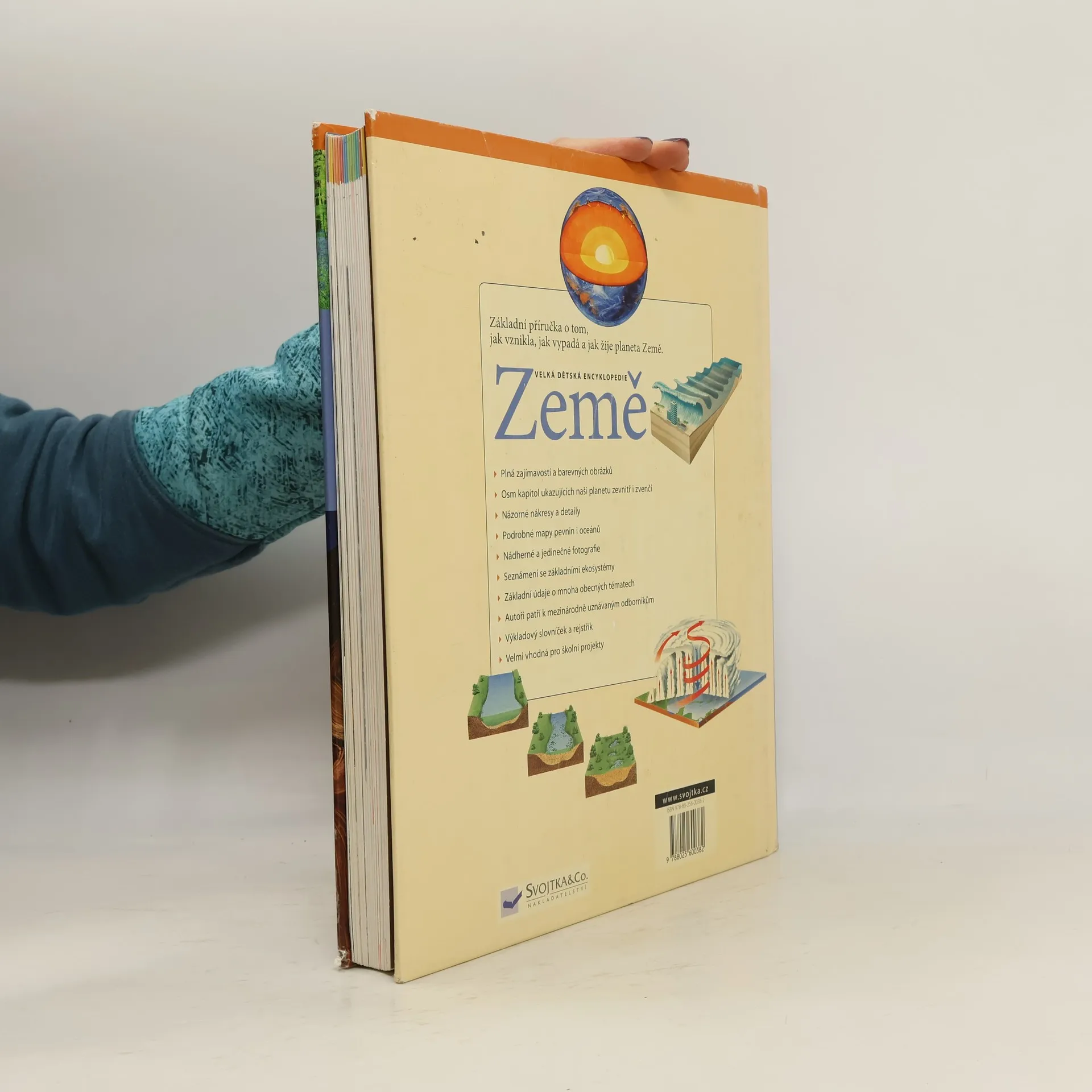 Tato velká dětská encyklopedie je základní příručkou o tom, jak vznikla, jak vypadá a jak žije planeta Země. Osm kapitol ukazuje naši planetu zevnitř i zvenčí. Kniha je plná zajímavostí, barevných obrázků a obsahuje nádherné nákresy, detaily, podrobné mapy pevnin a oceánů i jedinečné fotografie. Seznamuje se základními ekosystémy, obsahuje základní údaje o mnoha obecných tématech i výkladový slovníček a rejstřík. Je vhodná pro školní projekty i domácí studium.
