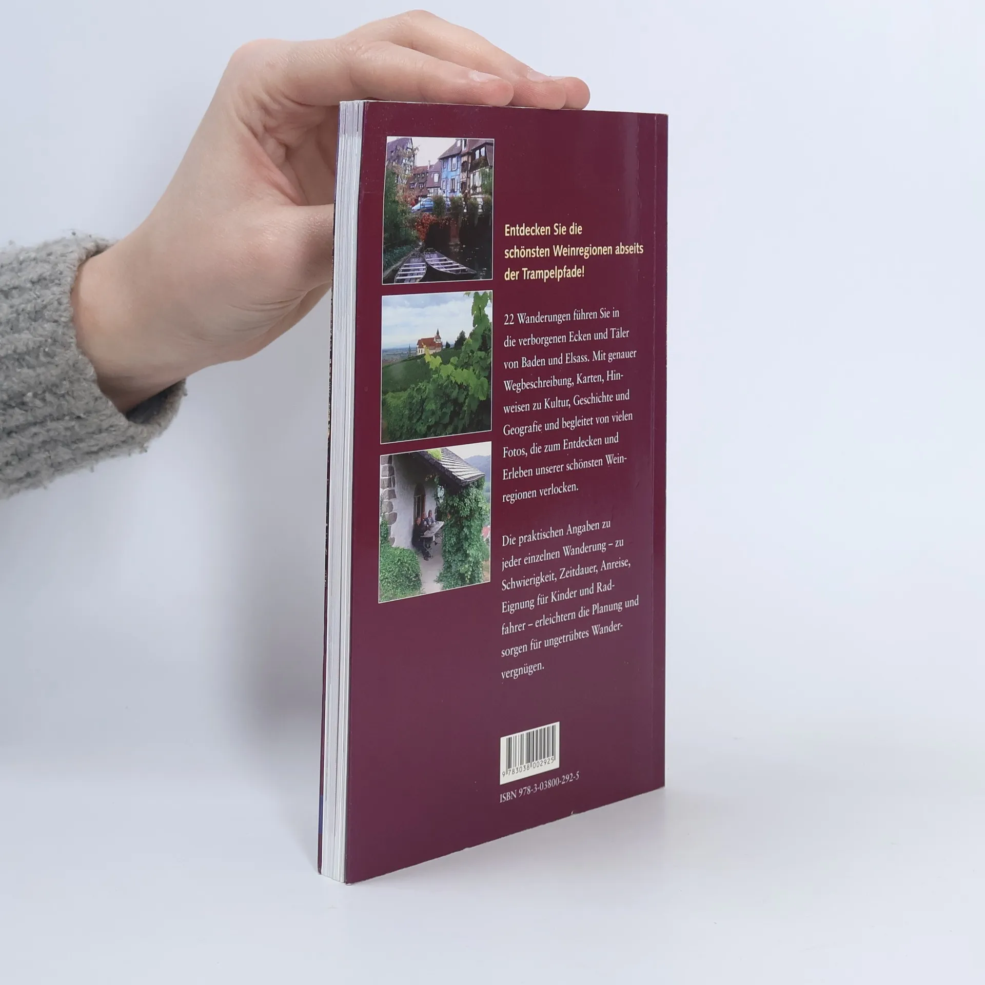 Die schönsten Wanderwege durch Weinberge in Elsass und Baden Der neuste Band der Reihe 'Weinwanderwege' führt in 22 Wanderungen in die verborgenen Ecken und Täler von Baden und Elsass. Im Badischen, der wärmsten Ecke Deutschlands, reih sich Weindorf an Weindorf, Tal an Tal, und jedes ha seinen eigenen Charakter, seine eigene Geschichte und seinen eigenen Wein. Und kaum ein Dorf ohne gemütlichen Gasthof mit guter badischer Küche. Was für Baden gilt, gilt fast Wort für Wort auch für das Elsass. Hinzu tritt hier der Einfluss Frankreichs, der allem einen ganz eigenen Charme gibt. Die Weine sind berühmt, die Weinorte ebenso. Wer das echte, verborgene Elsass entdecken und erleben will, der muss die Schuhe schnüren und durch die Weinberge wandern, mit den Winzern plaudern und auch einmal die abgelegenen Winkel erkunden. Der Führer bietet dem Leser alle notwendigen Informationen für die Vorbereitung seiner Wanderung. Er begleitet ihn auch auf dem Weg selbst und macht auf geschichtlich oder kulturell Bemerkenswertes aufmerksam. Natürlich fehlen auch Restaurantempfehlungen und Hinweise auf Degustationsmöglichkeiten nicht.