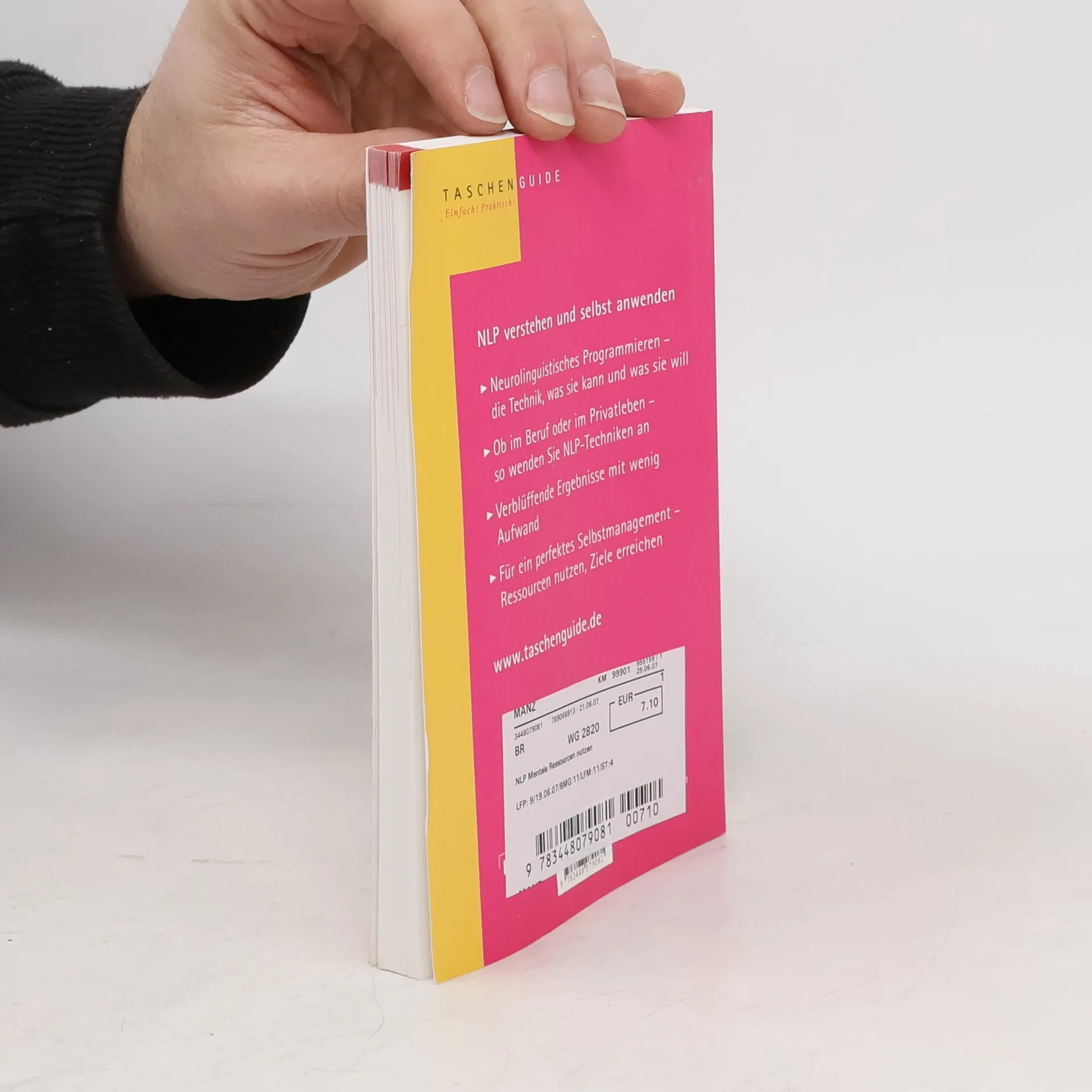 Dieser TaschenGuide macht es sich zur Aufgabe, das Erfolgsphänomen Neurolinguistisches Programmieren, kurz NLP, in seinen Grundzügen zu beschreiben. Er stellt dabei das Konzept und vier Einsatzmöglichkeiten dar und erklärt einschlägige Begriffe verständlich. INHALTE - Neurolinguistisches Programmieren - die Technik, was sie kann und was sie will - Ob im Beruf oder im Privatleben - so wenden Sie NLP-Techniken an - Verblüffende Ergebnisse mit wenig Aufwand - Für ein perfektes Selbstmanagement - Ressourcen nutzen, Ziele erreichen