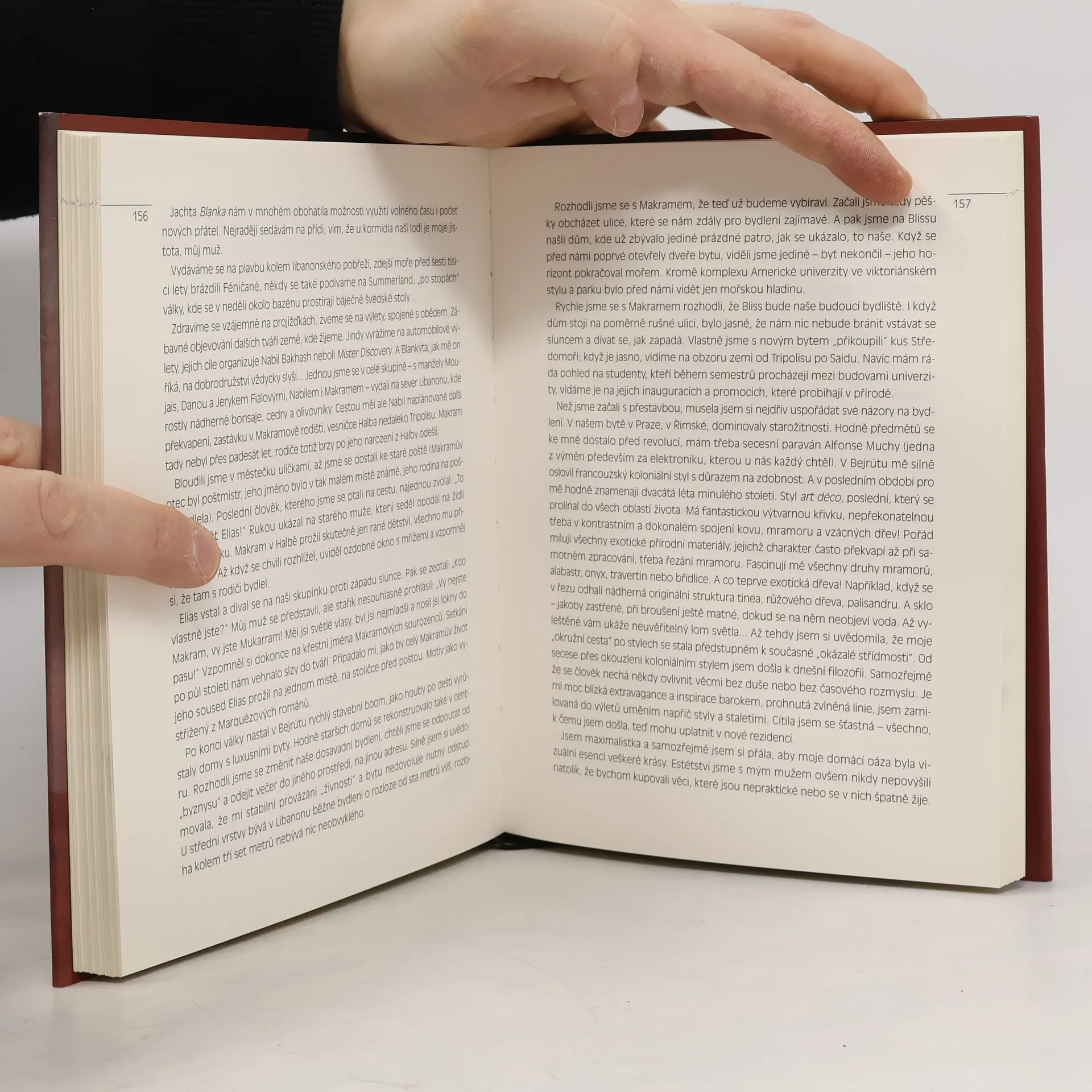Třináct kapitol životního příběhu Blanky Matragi mění v rychlých střizích své "kulisy" : od rodné Světlé nad Sázavou, přes Vysokou školu umělecko-průmyslovou, až po roky v Libanonu, kam odešla za svým mužem Makramem. Autorka barvitě líčí drsná léta libanonské války, během níž v centru Bejrútu odvážně otevřela svůj salon haute couture, úspěch u zdejší zhýčkané klientely, počátky kontaktů s Perským zálivem i svůj vstup do prvního královského paláce.