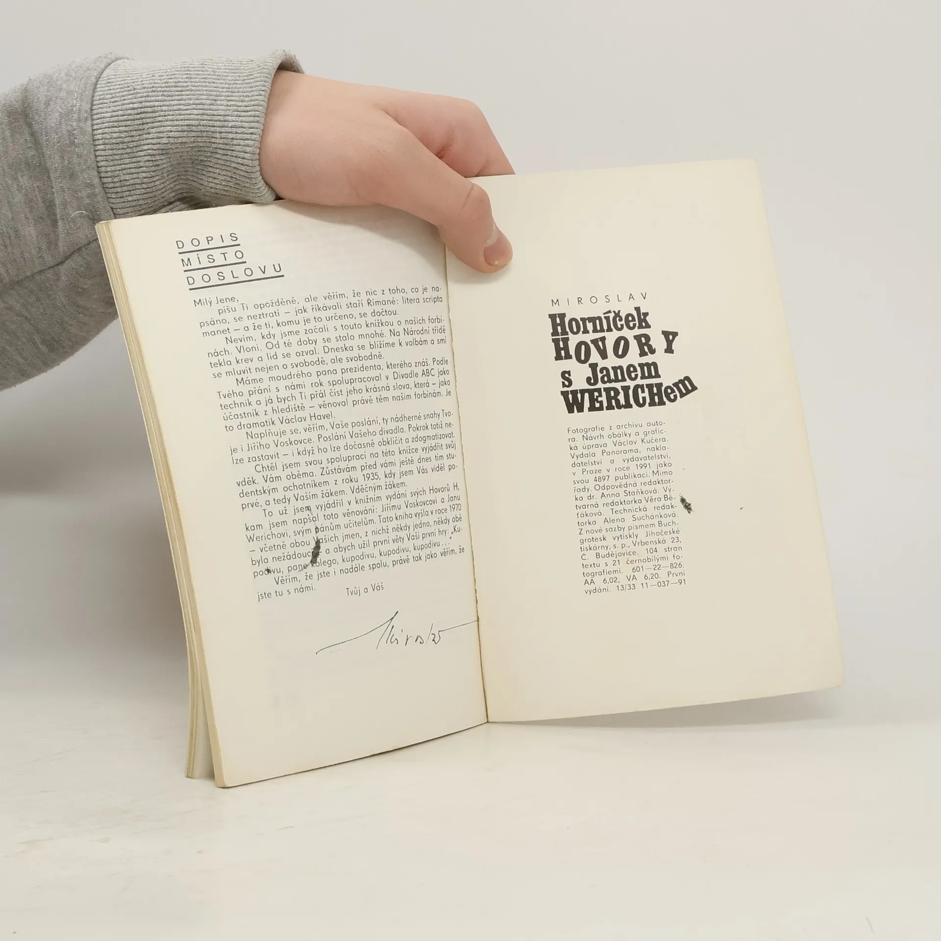 Kniha obsahuje přepsané forbíny (předscény) Wericha a Horníčka, Horníčkův pohled na Wericha, jejich rozhovor z rádia a také krásné fotografie.