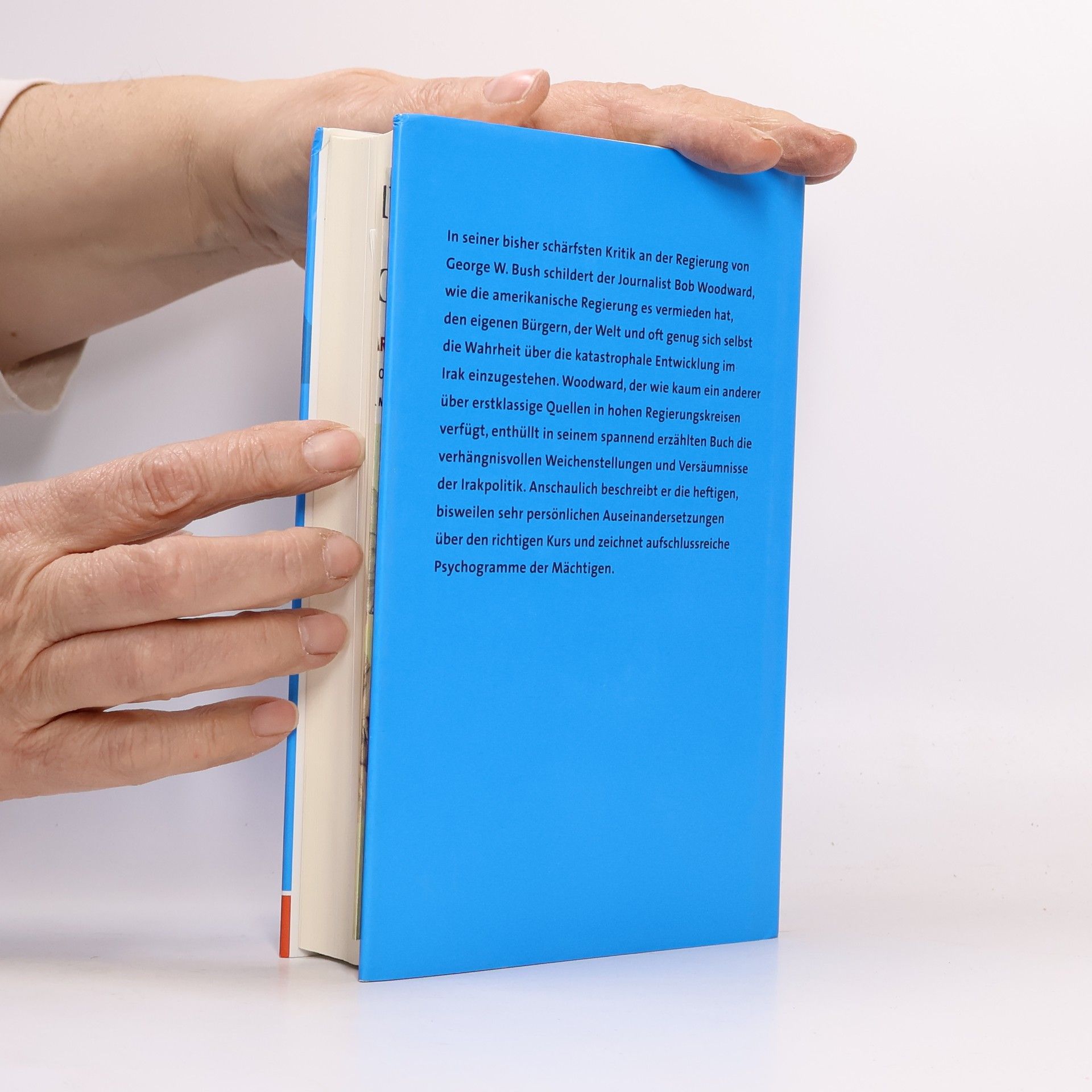 Was man nicht aus den Nachrichten erfährt Bob Woodward steht für gut recherchierte Geschichten aus den inneren Zirkeln der Macht in Amerika. Er sammelt Episoden, die ihm zugetragen werden, Protokolle vertraulicher Sitzungen, Geheimpapiere und Aussagen hochrangiger Regierungsmitarbeiter, die sich ihm unter der Zusicherung von Anonymität anvertrauen. Manche äußern sich offen in Interviews, wie Ex-Verteidigungsminister Donald Rumsfeld, und was sie sagen, fügt einen weiteren Mosaikstein in das düstere Bild, das Woodward in seinem neuen Buch zeichnet: Die Bush-Regierung verdrängt die Realität, agiert kopflos und belügt die Welt, nicht nur im Hinblick auf die verheerenden Zustände im Irak. Detailliert belegt er das krasse Missverhältnis zwischen dem Wissen der US-Administration und ihren öffentlichen Aussagen. • Ein ernüchternder Blick hinter die Kulissen des Weißen Hauses • Spannend erzählt: Unwahrheiten, Intrigen, Inkompetenz und Realitätsverlust der Mächtigen