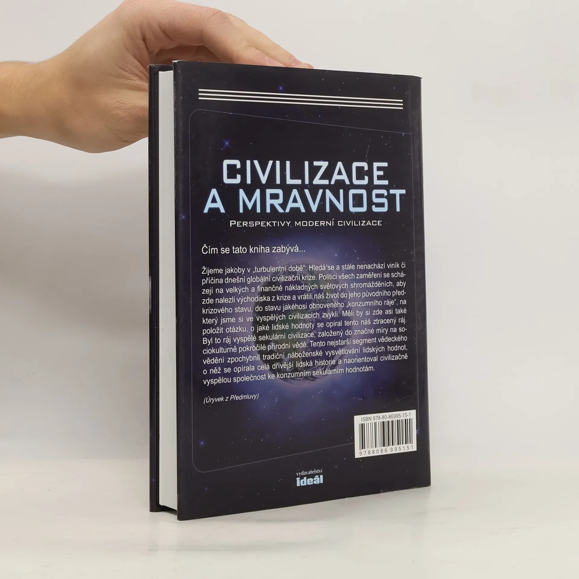 Žijeme jakoby v „turbulentní době“: Hledá se a stále nenachází viník či příčina dnešní globální civilizační krize. Politici všech zaměření se scházejí na velkých a finančně nákladných světových shromážděních, aby zde nalezli východiska z krize a vrátili náš život do jeho původního předkrizového stavu, do stavu jakéhosi obnoveného „konzumního ráje“, na který jsme si ve vyspělých civilizacích zvykli. Měli by si zde asi také položit otázku, o jaké lidské hodnoty se opíral tento náš ztracený ráj. Byl to ráj vyspělé sekulární civilizace, založený do značné míry na sociokulturně pokročilé přírodní vědě. Tento nejstarší segment vědeckého vědění zpochybnil tradiční náboženské vysvětlování lidských hodnot, o něž se opírala celá dřívější lidská historie a naorientoval civilizačně vyspělou společnost ke konzumním sekulárním hodnotám. Autor se již od mládí zabýval myšlenkou, zda má lidský život nějaký smysl. Napsal mnoho publikací na toto téma, které zaujaly širokou veřejnost. Jeho poslední kniha Civilizace a mravnost odráží autorovy nejnovější poznatky, které srozumitelnou formou předkládá čtenářské veřejnosti.