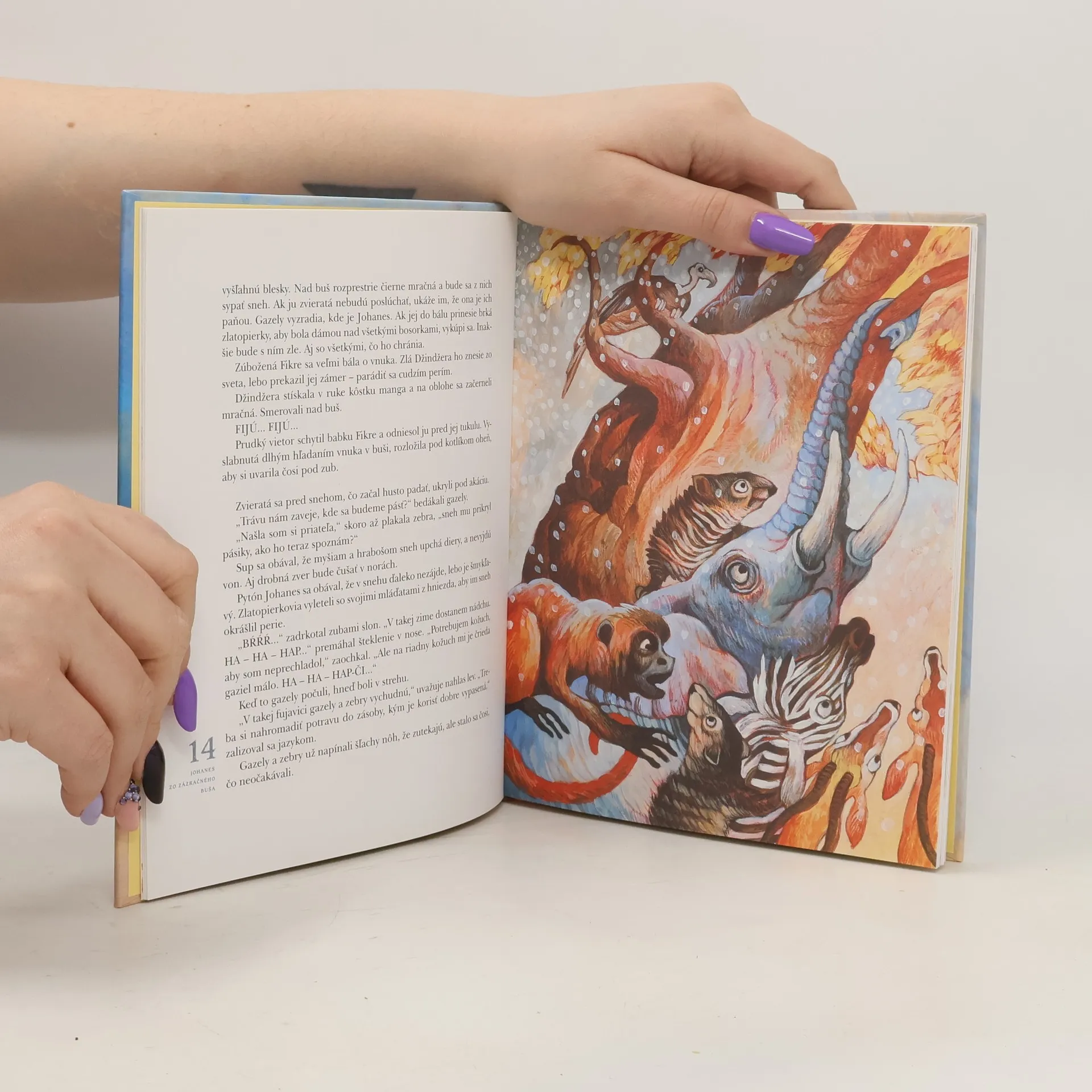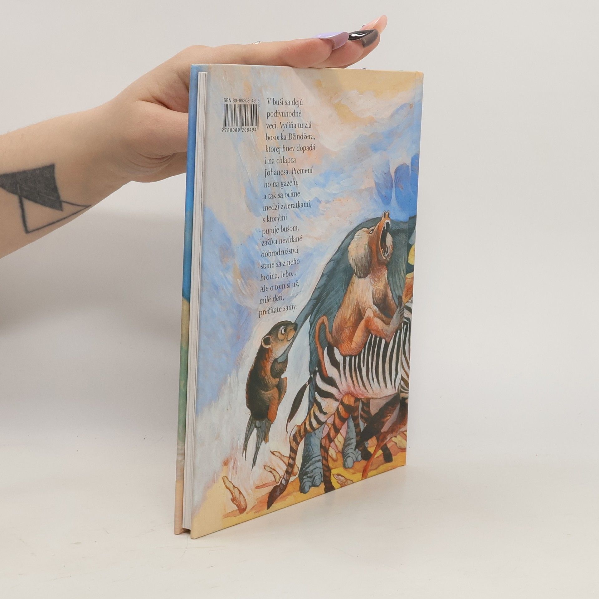 V buši sa dejú čudesné veci. Vyčíňa tu zlá bosorka Džindžera, o ktorej Johanesovi veľa rozprávala jeho stará mať Fikre. Zrazu je však vnúčik sám hrdinom jej tajuplných príbehov. Džindžera ho v hneve premení na gazelu – z honca sa stáva budúca pečienka... Našťastie stretol zlatopierku... I veľa ďalších štvornohých kamarátov nájde Johanes pri putovaní zázračným bušom. Zažije s nimi nespočet dobrodružstiev, pri ktorých tuhne krv v žilách. A ako to s ním dopadne? A s mocnou čarodejnicou Džindžerou? O tom si už prečítajte sami.