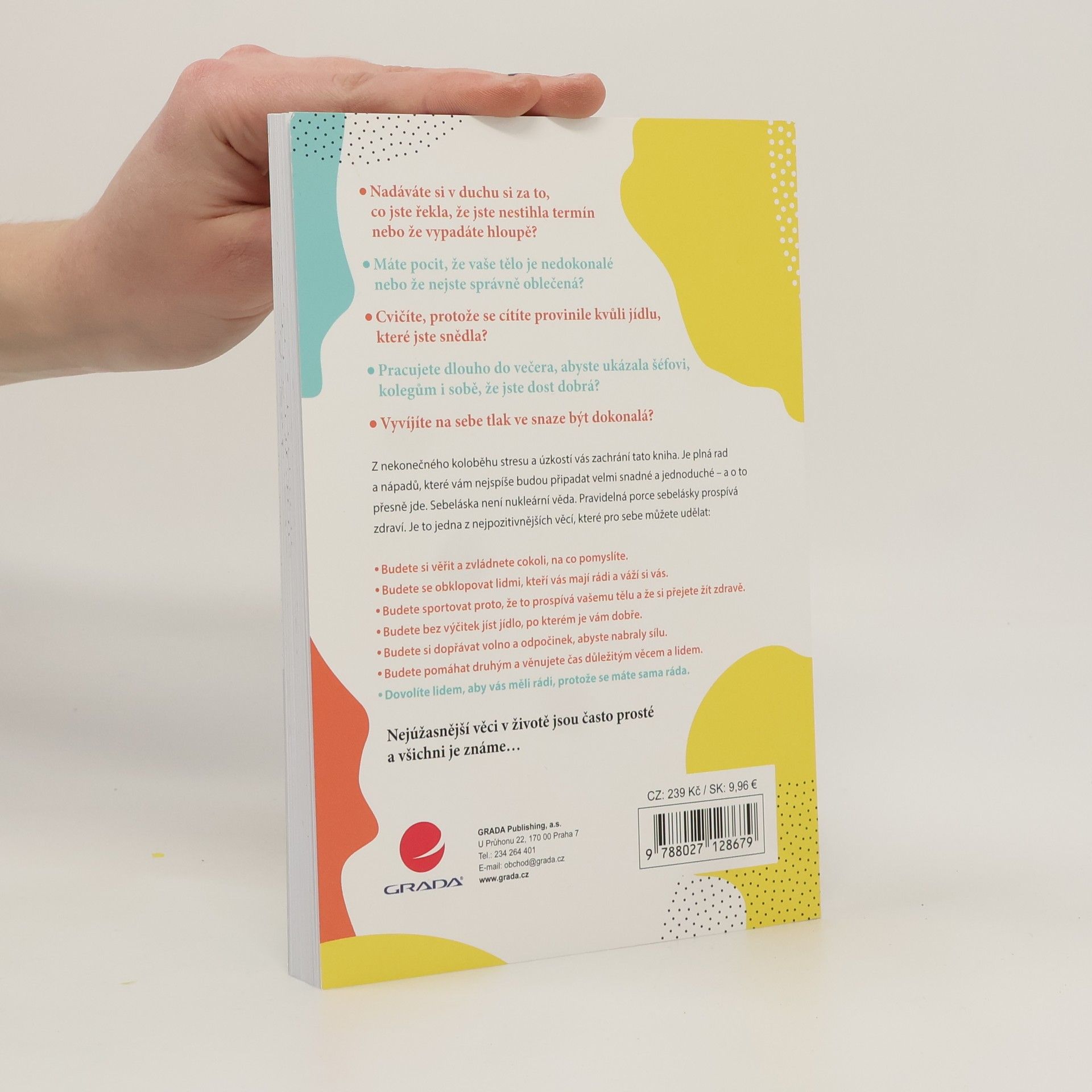 Cítíte se někdy špatně kvůli tomu, co jste řekla, nebo jak vypadáte? Máte pocit nedokonalosti svého těla nebo se cítíte provinile kvůli jídlu? Pracujete dlouho, abyste prokázala svou hodnotu? Pokud zažíváte neustálý stres, může to mít vážné zdravotní důsledky, jako oslabení imunitního systému, zvýšené riziko srdečních onemocnění, urychlené stárnutí a náchylnost k úzkosti a depresím. Tato kniha nabízí jednoduché a snadno aplikovatelné rady, jak se vymanit z cyklu stresu a úzkosti. Sebeláska není složitá; pravidelná péče o sebe přináší zdraví a pozitivní změny. Pomůže vám posílit sebevědomí, obklopit se lidmi, kteří vás podporují, a cvičit pro zdraví, nikoli z pocitu viny. Umožní vám jíst bez výčitek, dopřát si odpočinek a věnovat čas důležitým věcem a lidem. Dovolíte si být milována, protože se máte ráda. Nejkrásnější věci v životě jsou často jednoduché a známé, a tato kniha vám ukáže, jak je zařadit do každodenního života.