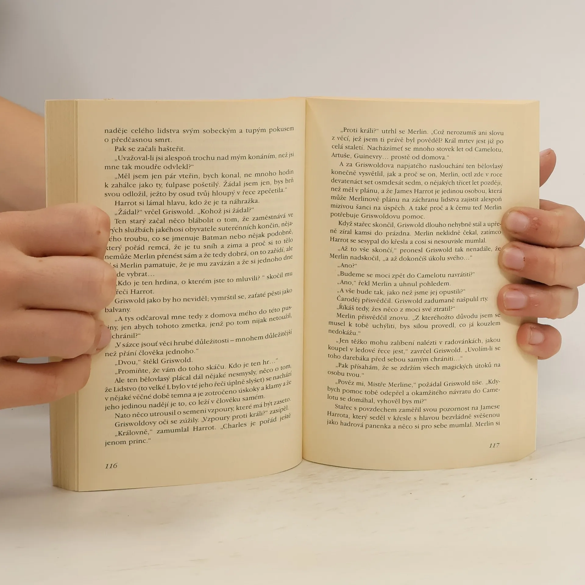Sira Griswolda, rytíře Kulatého stolu krále Artuše, vůbec nemrzelo, že Lancelota odrovnal. Koneckonců si o to ten pokrytecký hajzlík koledoval. Nedokázal však pochopit ten povyk, který kolem toho dělá Merlin. Existence nebo neexistence jednoho nafoukaného rytíře přece nemůže být tak strašně podstatná, nebo snad ano? Jenže očividně byla. A právě tento čin uvrhl Griswolda do světa hradů, které se pohybují, beden, které mluví, démonů, kteří žijí v malých plechových krabičkách, a nejhoršího nepřítele, jakému kdy lidstvo muselo čelit. Už ani nemluvě o orchestru, který se chystá zatroubit výzvu k Poslednímu soudu. Když se dvorní kouzelník krále Artuše rozhodne zachránit lidstvo, dojde k mnoha groteskním situacím, které autor popisuje bohatým jazykem a se skvělým suchým humorem.