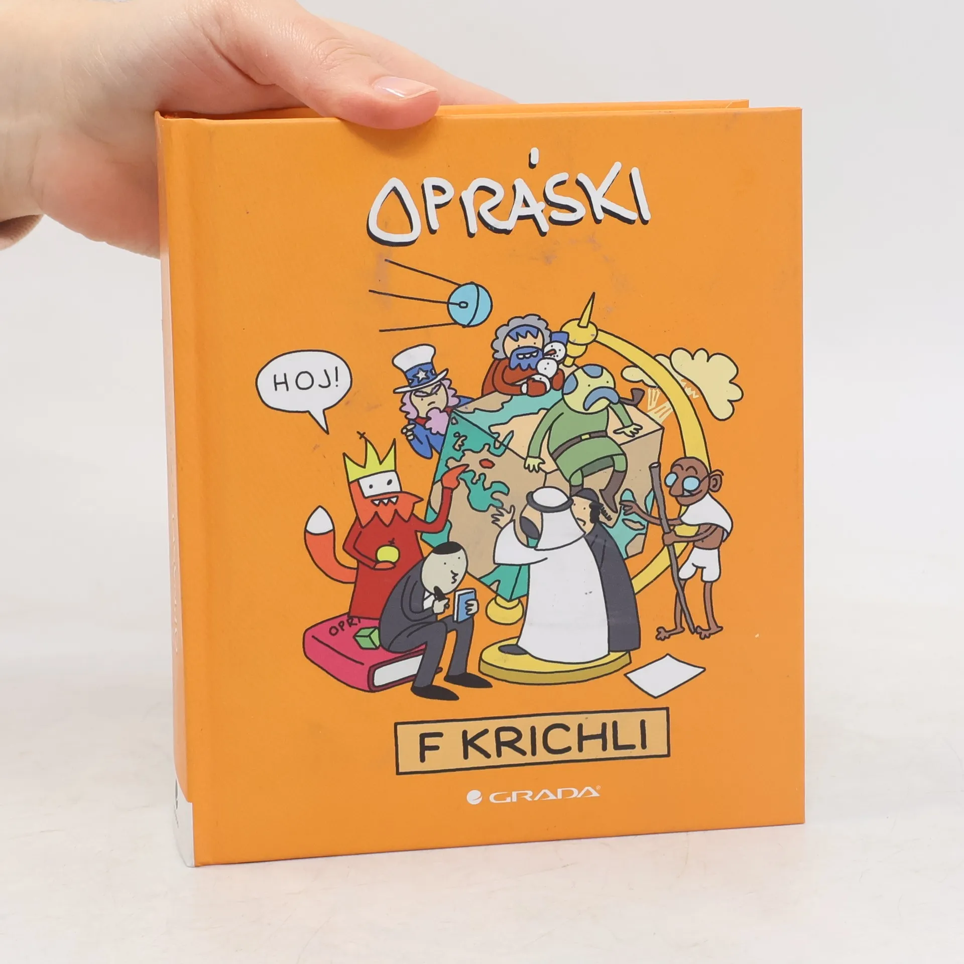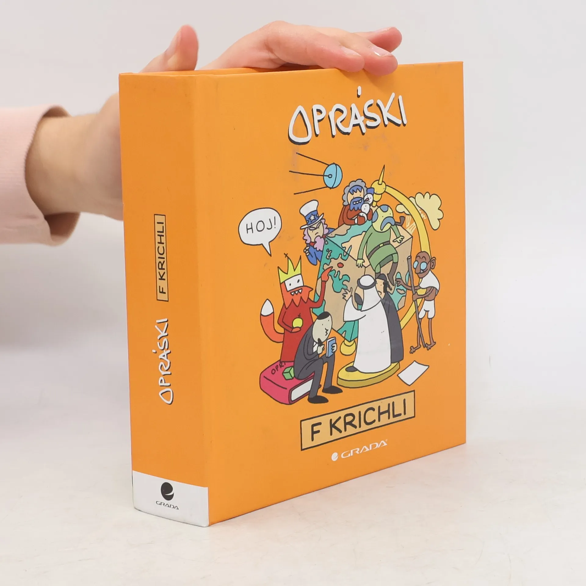 Po Opráscích sčeskí historje f koztce vychází druhá velká oprásková kniha, která se nemůže jmenovat jinak než Opráski f krichli. Obsahuje stripy z domova i ze světa. Bezmála 350 z celkových 478 obrázků v jiných knihách nenajdete. Nechybí opráski z Mitologje, Střevovjeku, Novovjěku, První leprubiki a dalších období české historie. Historie svjetová je zastoupena velikány, jako byl Pormétejuz, Ikaruz, Pitmagoraz nebo Ahcilez a jeho ževlička. Prostě, koupí knihy neprohloupíte: procvičíte si dějinné události a jako BONUZ se ještě pobavíte.