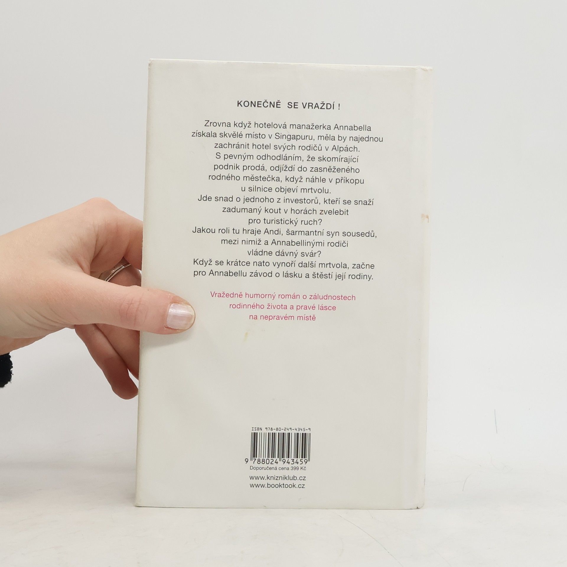Zrovna když hotelová manažerka Annabella získala skvělé místo v Singapuru, měla by najednou zachránit hotel svých rodičů v Alpách. S pevným odhodláním že skomírající podnik prodá, odjíždí do zasněženého rodného městečka, když náhle v příkopu u silnice objeví mrtvolu. Jde snad o jednoho z investorů, kteří se snaží zadumaný kout v horách zvelebit pro turistický ruch? Jakou roli tu hraje Andi, šarmantní syn sousedů, mezi nimiž a Annabellinými rodiči vládne dávný svár? Poté co se vynoří další mrtvola, začne pro Annabellu závod o lásku a štěstí její rodiny. Vražedně humorný román o záludnostech rodinného života a pravé lásce na nepravém místě.