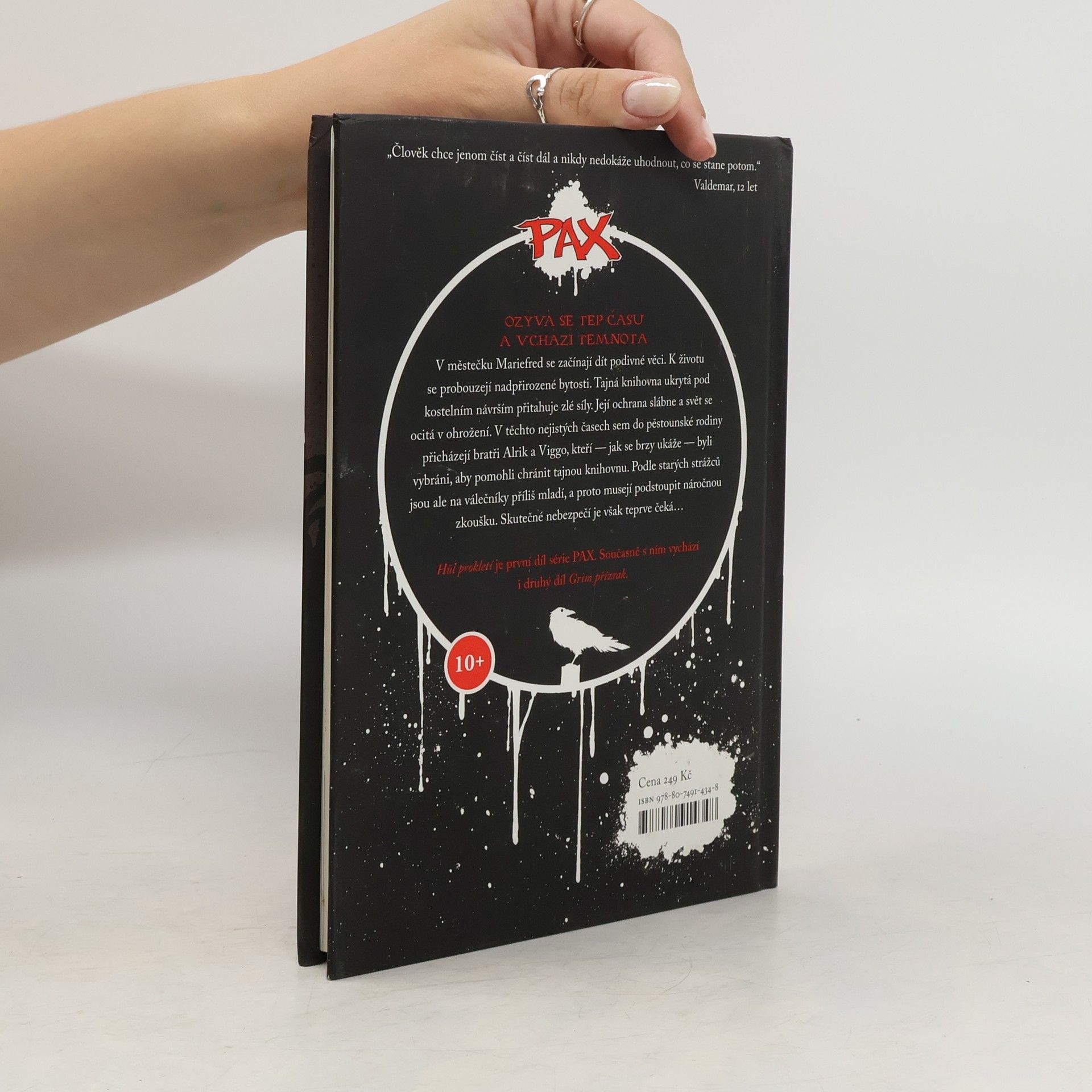 První díl ze série PAX pro mladé čtenáře. Ozývá se tep času a vchází temnota... V městečku Mariefred se začínají dít podivné věci. K životu se probouzejí nadpřirozené bytosti. Tajná knihovna ukrytá pod kostelním návrším přitahuje zlé síly. Její ochrana slábne a svět se ocitá v ohrožení. V těchto nejistých časech sem do pěstounské rodiny přicházejí bratři Alrik a Viggo, kteří — jak se brzy ukáže — byli vybráni, aby pomohli chránit tajnou knihovnu. Podle starých strážců jsou ale na válečníky příliš mladí, a proto musejí podstoupit náročnou zkoušku. Skutečné nebezpečí je však teprve čeká… Desetidílná série PAX je napínavá urban fantasy odehrávající se ve světě zabydleném bytostmi z hlubin staré severské mytologie. Zároveň je to dojemný příběh o síle sourozeneckého vztahu i o tom, jak je těžké naučit se znovu důvěřovat, když nás dospělí, na něž spoléháme, tolikrát zklamali. Svižný jazyk, atraktivní téma, napínavý děj a působivé komiksové ilustrace — ideální knihy pro ty, jimž čtení k srdci zatím moc nepřirostlo.