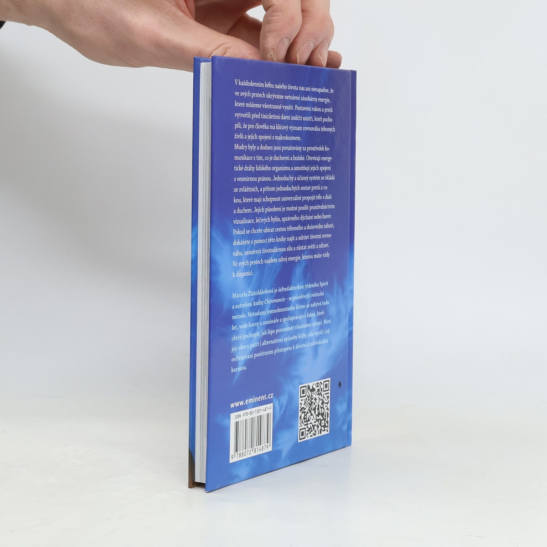 V každodenním životě často zapomínáme, že v našich prstech se skrývá nevyčerpatelný zdroj energie. Postavení rukou a prstů, které vytvořili indičtí Mistři, ukazuje na klíčovou roli rovnováhy tělesných živlů a jejich spojení s makrokosmem. Mudry, jakožto prostředek komunikace s duchovním a božským, otevírají energetické dráhy v lidském organismu a spojují je s vesmírnou pranou. Tento jednoduchý a účinný systém zahrnuje specifické sestavy prstů a rukou, které propojují tělo s duší a duchem. Jejich účinek lze posílit vizualizací, léčivými bylinami, správným dýcháním nebo barvami. Pokud usilujete o tělesné a duševní zdraví, tato kniha vám pomůže najít a udržet životní rovnováhu, usměrnit životadárnou sílu a zůstat svěží a zdraví. V prstech objevíte zdroj neustálé energie. Marcela Zlatohlávková, šéfredaktorka týdeníku Spirit a autorka knihy o chiromancii, se léčením a alternativními metodami zabývá řadu let. Vede kurzy a semináře a spolupracuje s lidmi, kteří chtějí lépe porozumět svému zdraví, přičemž se zaměřuje na sílu mysli a pozitivní přístup k životu.