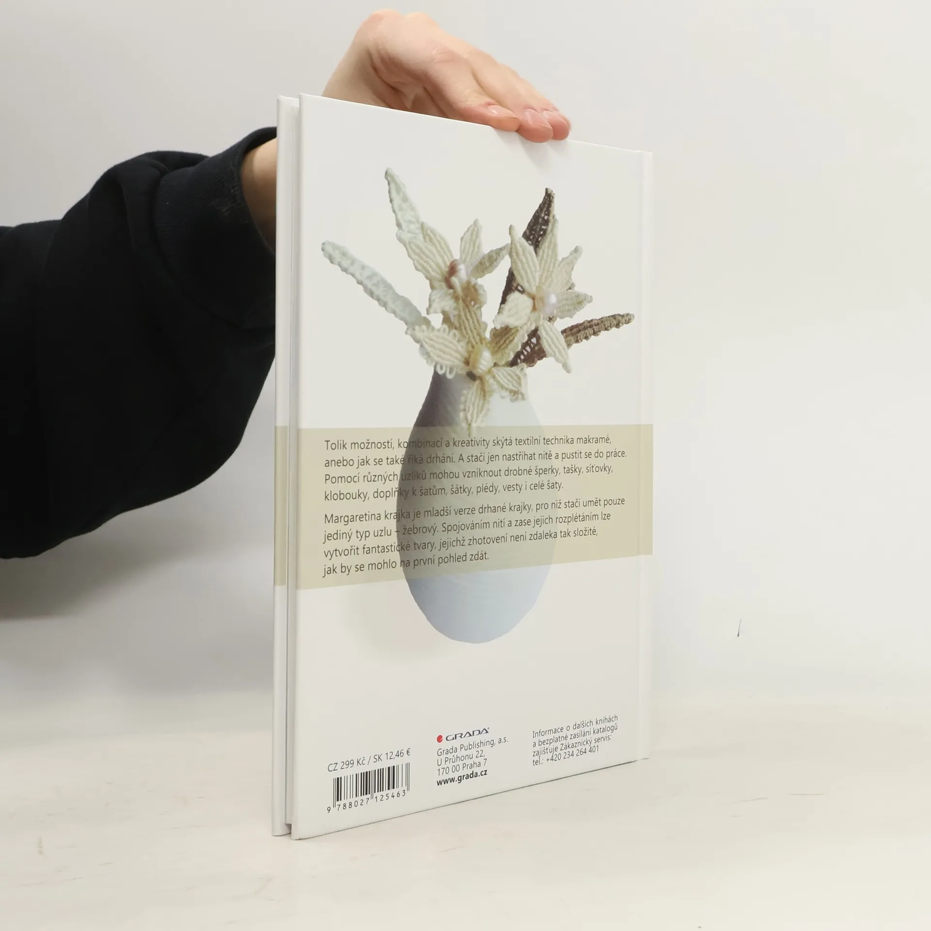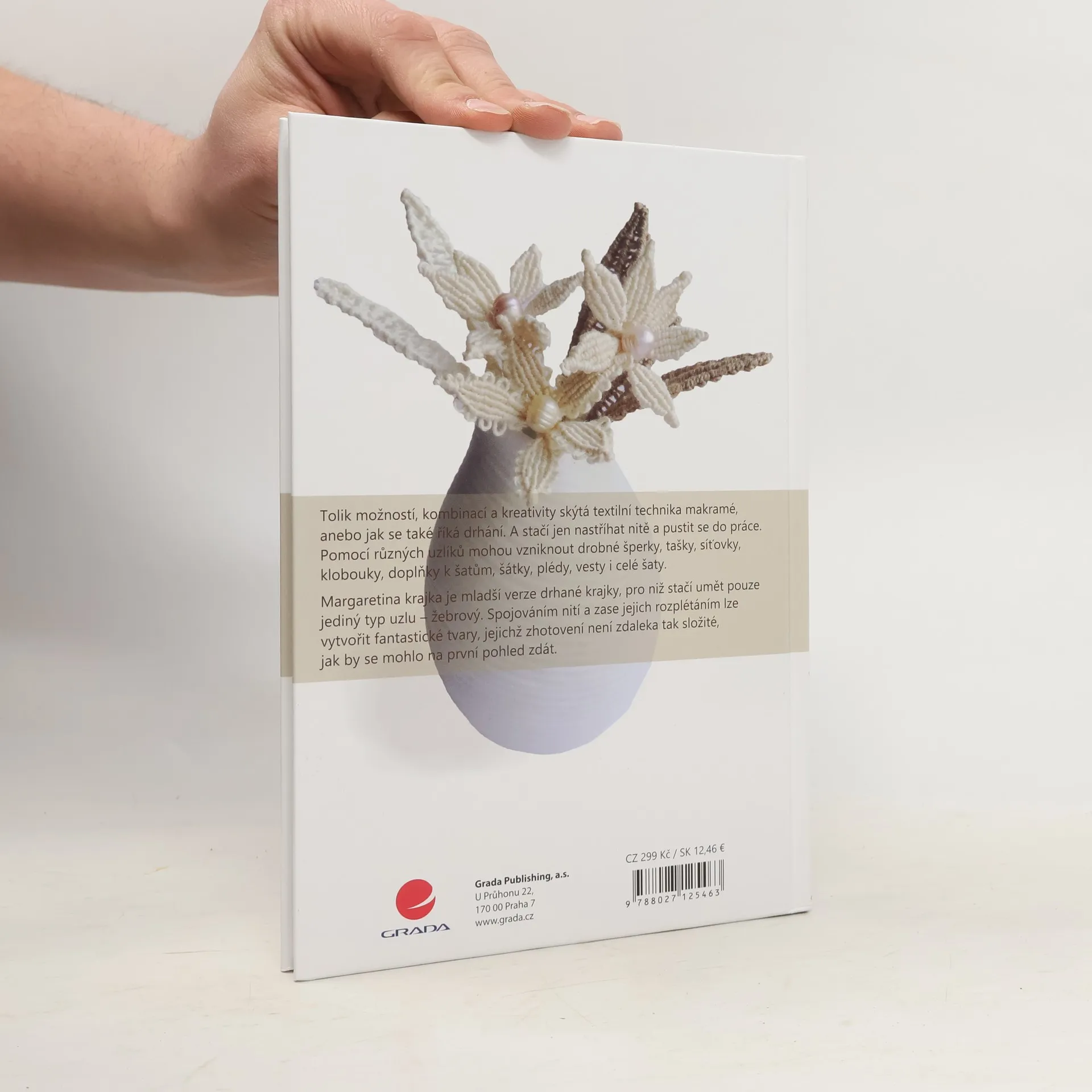 Krásná, přitom jednoduchá a dnes už téměř klasická textilní technika, kterou stojí určitě za to poznat. Po krátkém pohledu do historie následuje popis základních principů makramé a jejích odlišností od původní techniky drhání. Najdete zde vše, co pro její výrobu budete potřebovat včetně mnoha doprovodných fotografií, názorných nákresů a dobře srozumitelných návodů. Určitě vás překvapí, že neobvyklé a na první pohled složité vzory, lze vytvořit poměrně jednoduchými pracovními postupy. Stejným způsobem je v knize zpracovaná i příbuzná technika - Margaretina krajka.