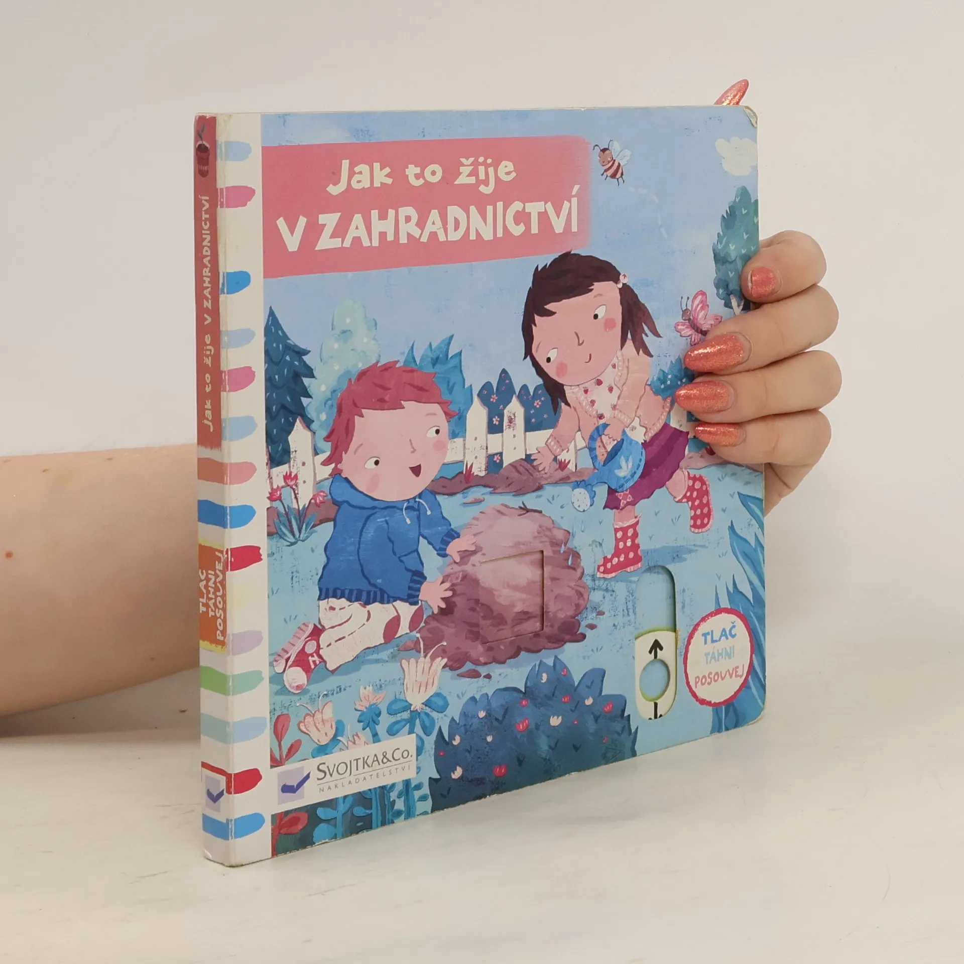 Kdo žije na zahradě v zimě, když všechny květiny ještě spí? Kam až se vytáhne na jaře zasazený stromek? Toto veršované leporelo je určeno dětem od jednoho roku. Má pevné stránky s posuvnými a otočnými prvky, a tak si dítě při prohlížení knížky současně procvičí jemnou motoriku. Na jednotlivých stránkách může posouvat, tahat, otáčet. Objeví nové věci, o kterých si můžete společně popovídat!