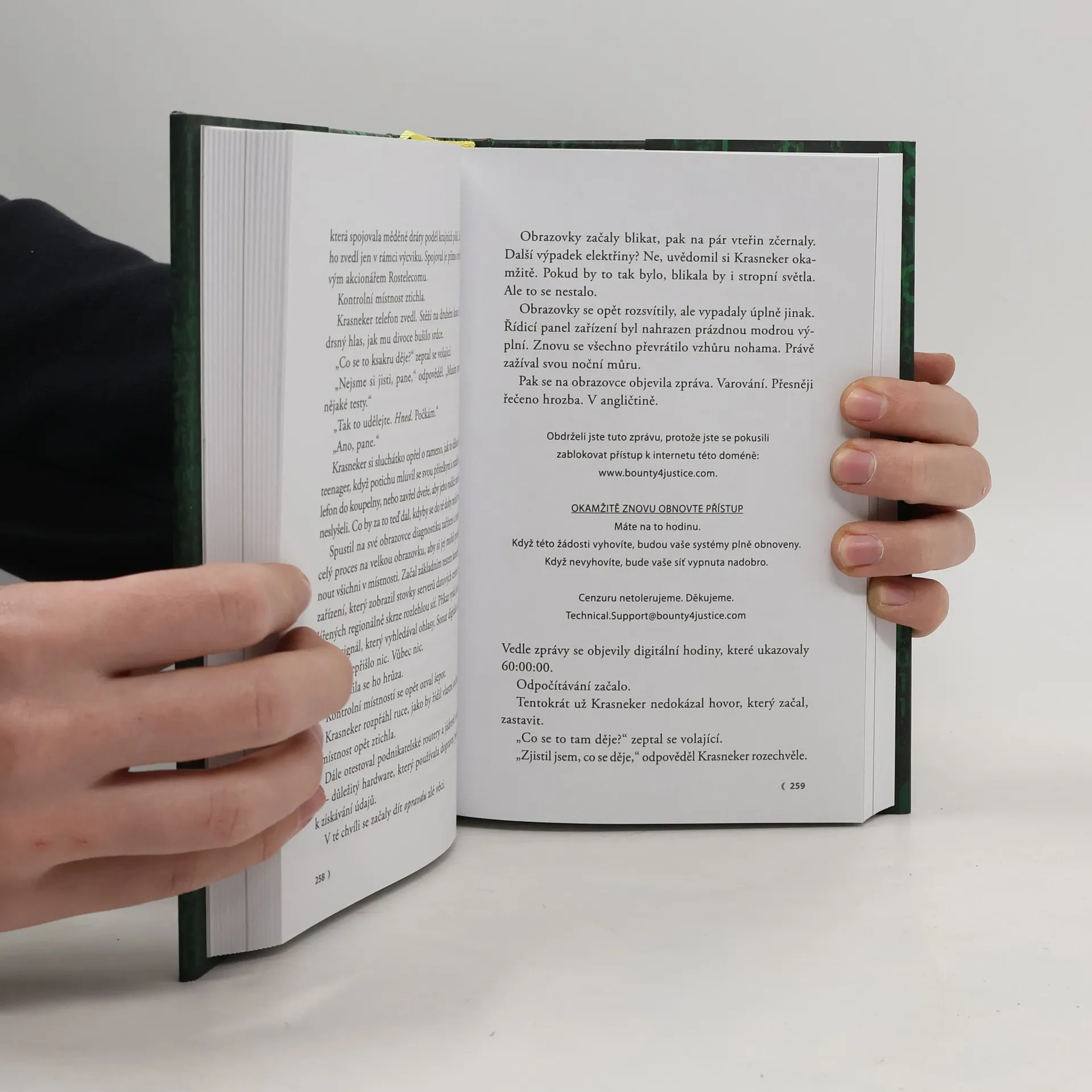 Připojte se k asociální síti! Napínavý román o tom, co se stane, když všudypřítomná korupce a masové veřejné nepokoje zničí i poslední iluzi o tom, že ještě žijeme v právním státě. Když je zákon bezmocný a nedokáže už zastavit finanční kriminalitu, zkorumpované politiky a další podvodníky z řad elit, kteří zničili světovou ekonomiku, musí vzít věci do vlastních rukou obyčejní lidé prostřednictvím webové stránky, která vyplatí odměnu každému, kdo někoho z těchto zločinců zlikviduje. Zatímco dav tleská, agent Novak a jeho tým zaměřený na počítačovou kriminalitu je bezmocný. Nemohou sledovat toky peněz, nemohou zatknout milion lidí. FBI ani nemůže tuto stránku vypnout, ani najít majitele. A stoupenci těchto stránek přibývají po celém světě... A to ještě netuší, jaký zvrácený motiv má duchovní otec a zakladatel bounty4justice.com Bounty přináší akci a násilí, ale také zamyšlení nad povahou spravedlnosti, právního státu a vůlí lidu.