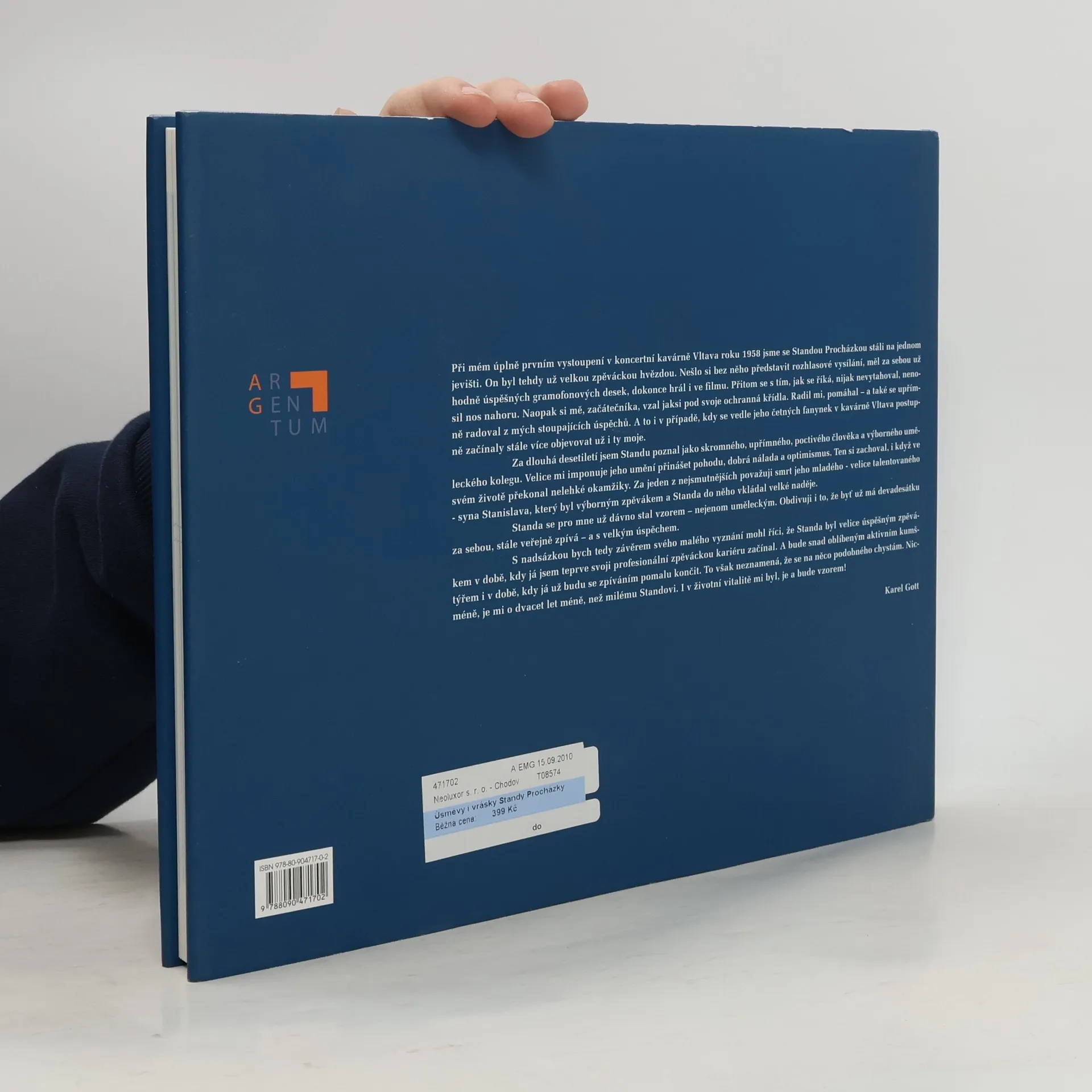 Se Standou Procházkou ji napsal zkušený autor publikací o dechové a lidové hudbě Milan Koukal. Z Koukalovy tvorby připomeňme knihu Sága rodu Vejvodů (2005), obsáhlou encyklopedickou publikaci o historii a současnosti naší dechové hudby Dechovka (2007) či titul Života román textaře Ladislava Jacury aneb Už, kamarádi, pomalu stárnem (2009). Kniha poutavě přibližuje celý dlouhý, plodný a úspěšný jednadevadesátiletý život zpěváka Standy Procházky. Zaujme i bohatým obrazovým, dokumentačním a fotografickým materiálem. Zpěvákovým velkým přítelem se stal Karel Gott, s nímž Standa Procházka od roku 1958 působil v koncertní kavárně Vltava. Vzpomíná však i na jiné známé osobnosti Járu Kohouta, Vlastu Buriana, Jaromíra Vejvodu, Karla Vacka, Josefa Stelibského, Jaroslava Štercla, Inku Zemánkovou, Hanu Vítovou a mnohé další.