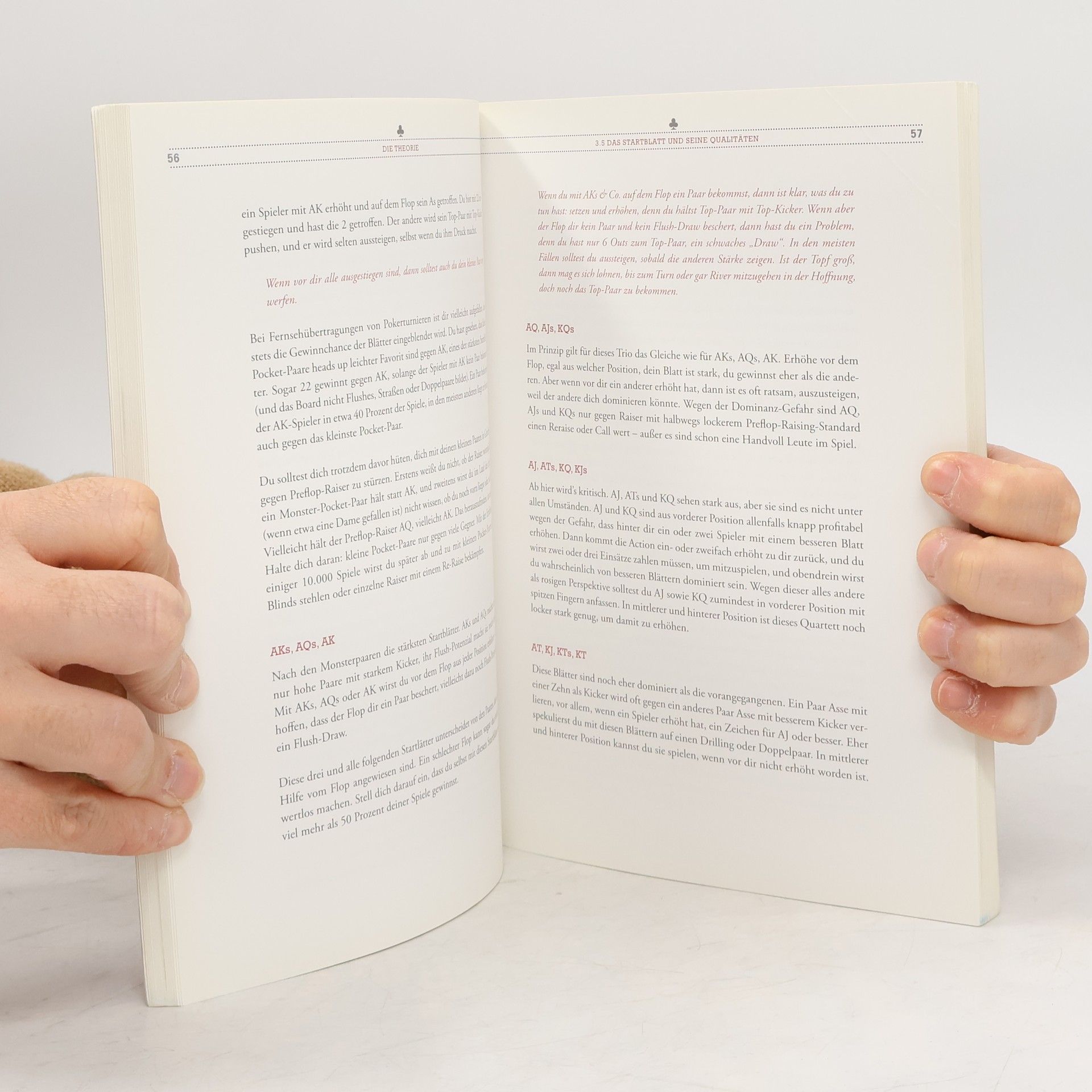 Ideal für Einsteiger, gut strukturiert und leicht lesbar, bietet T. H. E. Book auch für Fortgeschrittene wertvolle Einblicke. Es lehrt die Grundlagen und Strategien, um am Pokertisch erfolgreich zu sein, und hilft dem Leser, die richtige Balance zwischen Optimismus und Vorsicht zu finden. Typische Situationen und knappe Entscheidungen aus der Praxis zeigen Tricks, die auch erfahrene Spieler zum Gewinnen nutzen können. Mit humorvollen Anekdoten wird die Welt des Pokers anschaulich erklärt, wobei kommentierte Spiele aufzeigen, worauf starke Spieler achten und was schwache Spieler übersehen. Computerstatistiken werden als Hilfsmittel vorgestellt, um Gegner zu identifizieren und das eigene Spiel zu verbessern. Die Sprache ist flüssig und ansprechend für sowohl Online- als auch Live-Spieler, mit verständlichen Erklärungen und Beispielen, die Lust auf Poker machen. Der Autor führt den Leser durch die Welt von Texas Hold'em und zeigt, welche Faktoren für langfristige Gewinne entscheidend sind. Anhand realer Spielkonstellationen erläutert er Standards sowie kritische Entscheidungen und unterscheidet zwischen „Fischen“ und starken Spielern. Mit praktischen Tipps für Online- und Offline-Partien werden Anfängerfehler vermieden. Die Analyse der Spielertypen und optimierten Spielweisen vermittelt ein tiefes Verständnis für Texas Hold'em und die profitabelste Spielweise. See you at the tables.