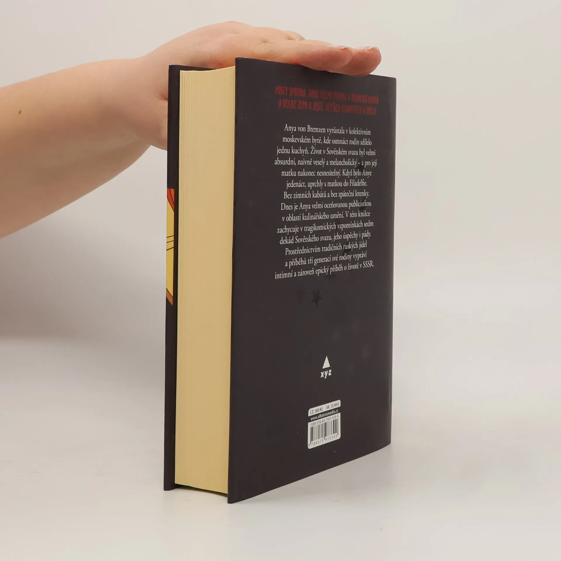 Anya von Bremzen se narodila v roce 1963. Vyrůstala v kolektivním moskevském bytě, kde osmnáct rodin sdílelo jednu kuchyň. Zpívala oslavné písně na Lenina, ve škole tajně prodávala žvýkačky Juicy Fruit a dívala se, jak její otec pálí domácí whisky. Život v Sovětském svazu byl velmi absurdní, naivně veselý a melancholický – a pro její matku nakonec nesnesitelný. Když bylo Anye deset let, uprchly s matkou do Filadelfie. Bez zimních kabátů a bez zpáteční letenky. Dnes je Anya velmi oceňovanou publicistkou v oblasti kulinářského umění. Píše o čtyřhvězdičkových restauracích a občas se nechá nostalgicky unést vůní pirohů. V této knížce zachycuje v tragikomických vzpomínkách sedm dekád Sovětského svazu, jeho úspěchy i pády. Prostřednictvím tradičních ruských jídel a příběhů tří generací své rodiny Anya vypráví intimní a zároveň epický příběh o životě v SSSR.