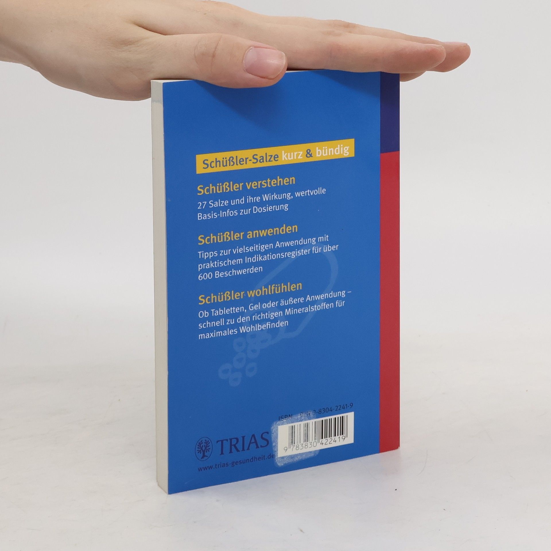 Schüßler verstehen 27 Salze und ihre Wirkung, wertvolle Basis-Infos zur Dosierung. Schüßler anwenden Tipps zur vielseitigen Anwendung mit praktischem Indikationsregister für über 600 Beschwerden. Schüßler wohlfühlen Ob Tabletten, Gel oder äußere Anwendung - schnell zu den richtigen Mineralstoffen für maximales Wohlbefinden