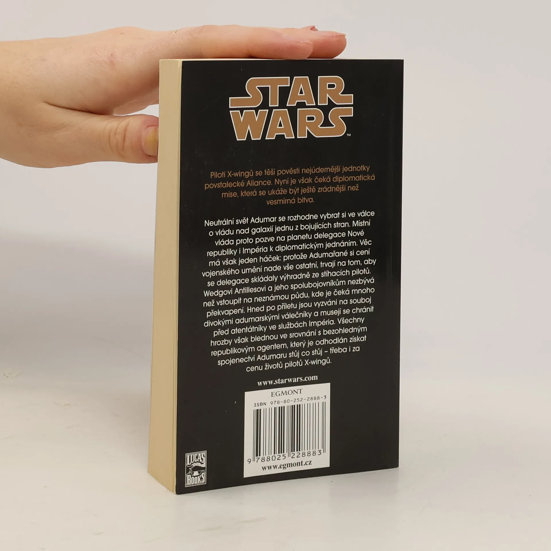 Neutrální svět Adumar se rozhodne vybrat si ve válce o vládu nad galaxií jednu z bojujících stran. Místní vláda proto pozve na planetu delegace Nové republiky i Impéria k diplomatickým jednáním. Věc má však jeden háček: protože Adumařané si cení vojenského umění nade vše ostatní, trvají na tom, aby se delegace skládaly výhradně ze stíhacích pilotů. Wedgovi Antillesovi a jeho spolubojovníkům nezbývá než vstoupit na neznámou půdu, kde je čeká mnoho nečekaných překvapení. Nedlouho po příletu jsou vyzváni na souboj divokými adumarskými válečníky a musejí se chránit před atentátníky ve službách Impéria. Všechny hrozby však blednou ve srovnání s bezohledným agentem Republiky, který je odhodlán získat spojenectví Adumaru jednou provždy – třeba i za cenu životů pilotů X-wingů. 1. vydání. -- zdroj: www.legie.info --