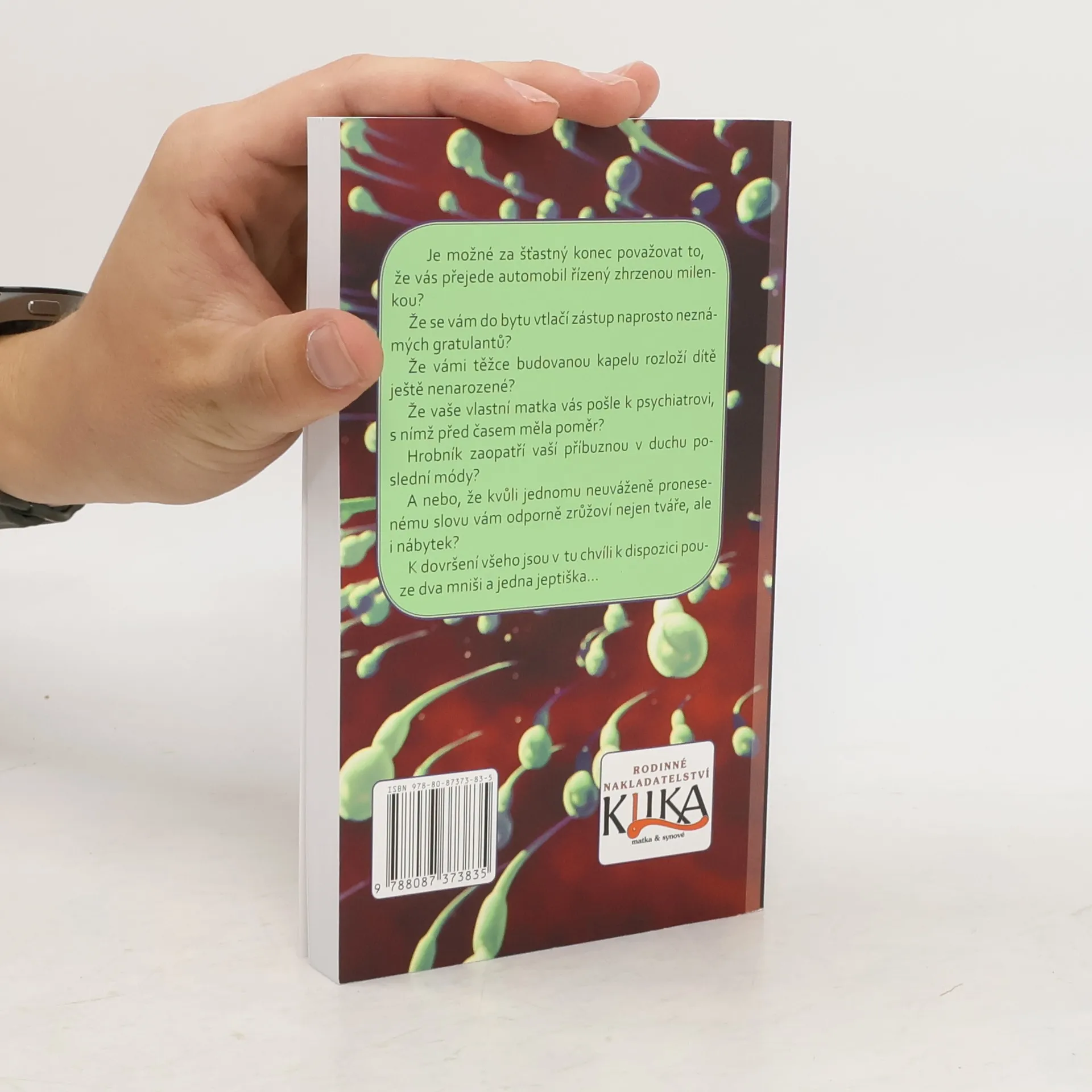 Je možné za šťastný konec považovat to, že vás přejede automobil řízený zhrzenou milenkou? Že se vám do bytu vtlačí zástup naprosto neznámých gratulantů? Že vámi těžce budovanou kapelu rozloží dítě ještě nenarozené? Že vaše vlastní matka vás pošle k psychiatrovi, s nímž před časem měla poměr? Hrobník zaopatří vaší příbuznou v duchu poslední módy? A nebo, že kvůli jednomu neuváženě pronesenému slovu vám odporně zrůžoví nejen tváře, ale i nábytek? K dovršení všeho jsou v tu chvíli k dispozici pouze dva mniši a jedna jeptiška…