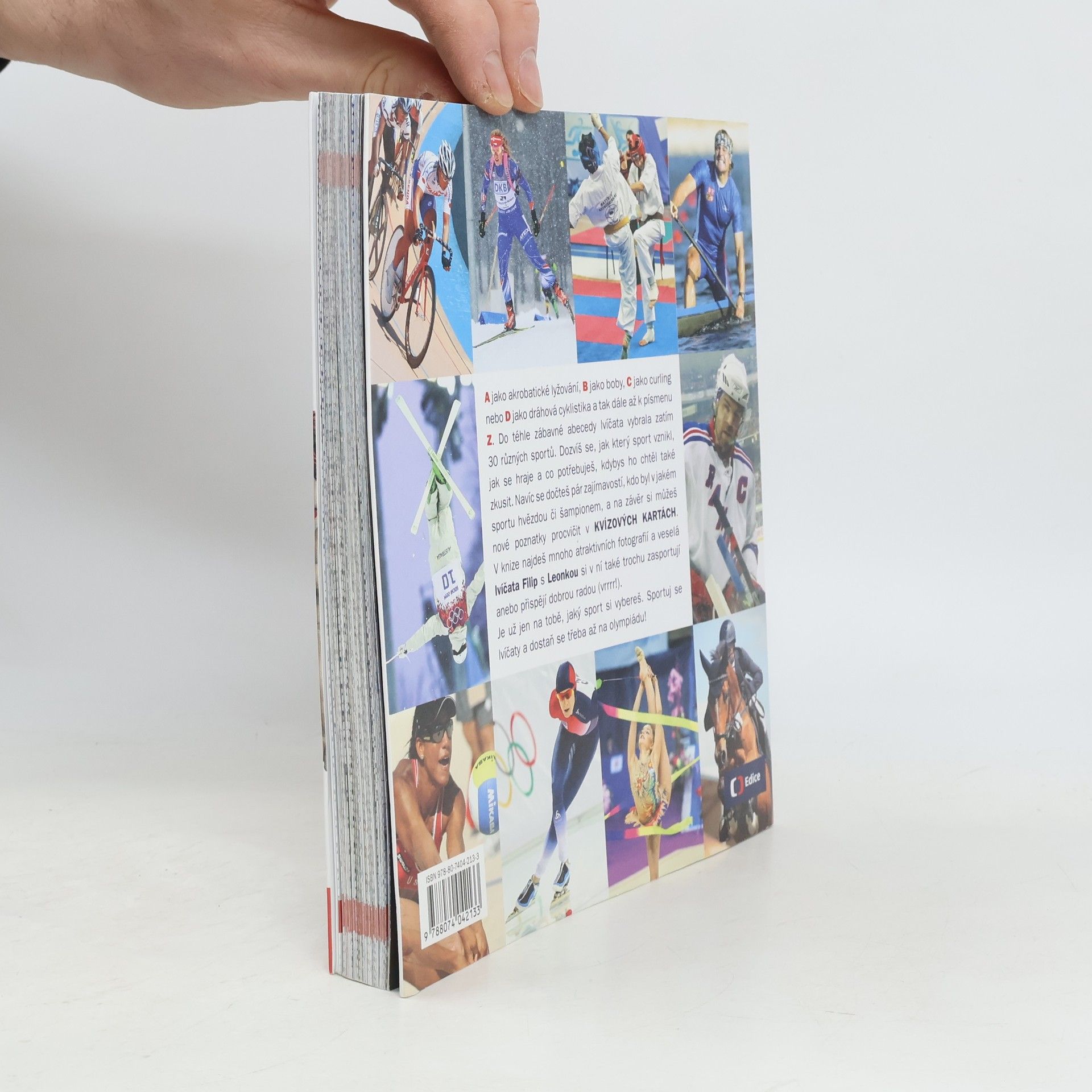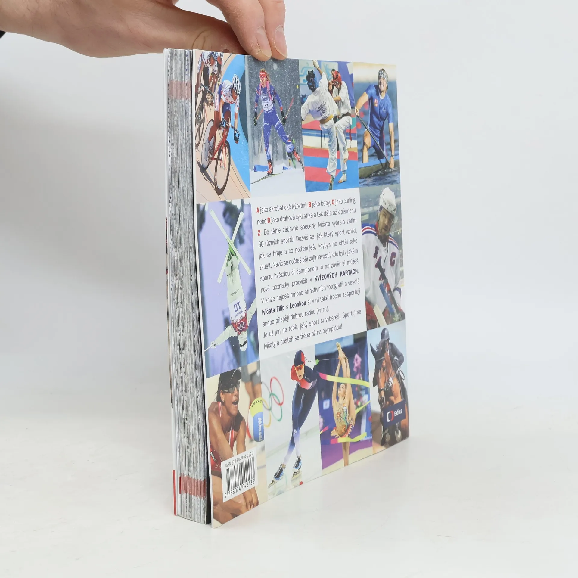 A jako akrobatické lyžování, B jako boby, C jako curling nebo D jako dráhová cyklistika a tak dále až k písmenu Z. Do téhle zábavné abecedy autoři vybrali zatím 30 různých sportů. Čtenáři se dozvědí, jak který sport vznikl, jak se hraje a jaké vybavení potřebují, kdyby si ho chtěli také zkusit. Navíc se dočtou pár zajímavostí, kdo byl v jakém sportu hvězdou či šampionem, a na závěr si mohou nové poznatky procvičit v KVÍZOVÝCH KARTÁCH. Popsané sporty doprovází mnoho atraktivních fotografií a veselá lvíčata Filip s Leonkou si v ní také trochu zasportují anebo přispějí dobrou radou. Je už jen na čtenářích, jaký sport si vyberou. Sportováním se lvíčaty se třeba dostanou až na olympiádu!