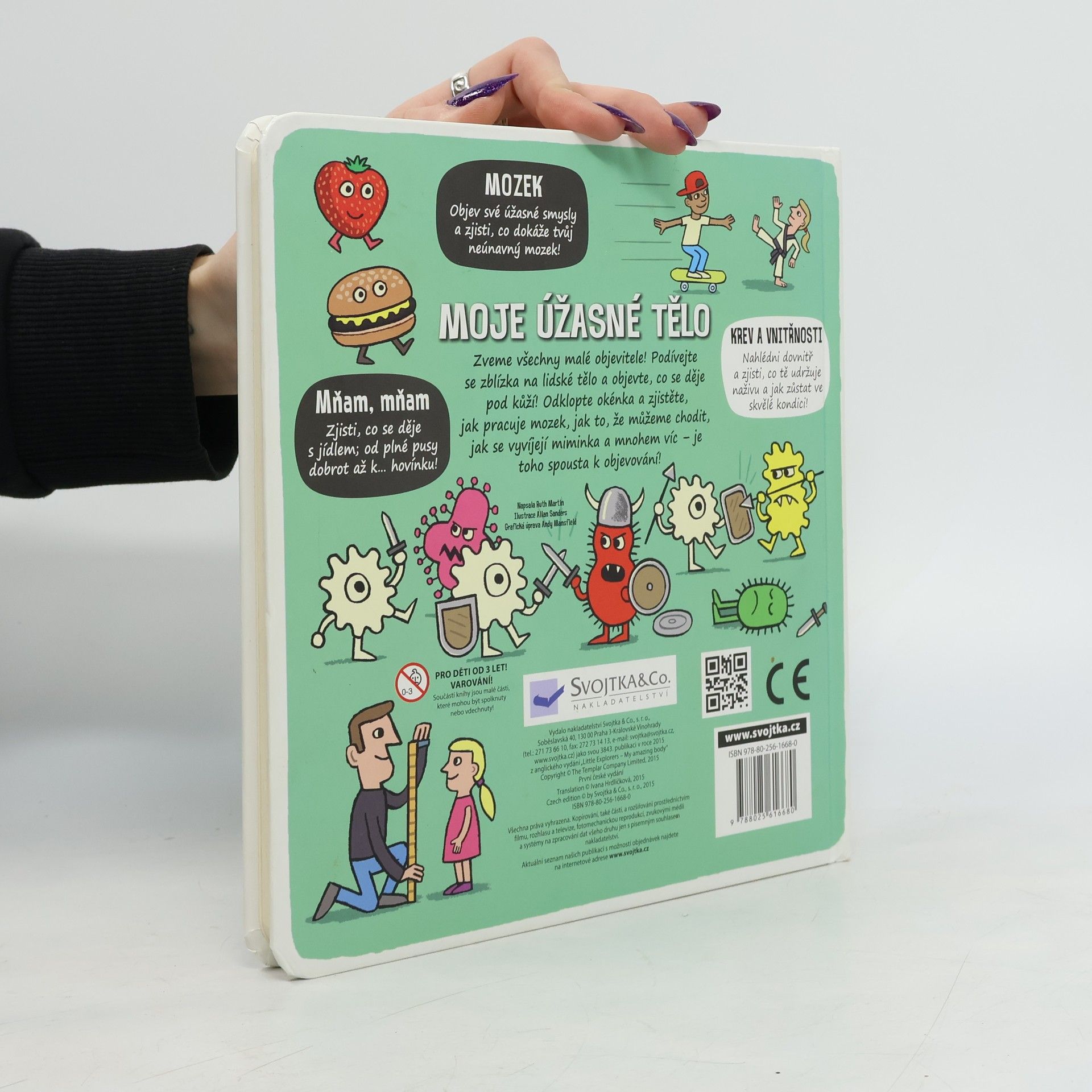 Zveme všechny malé průzkumníky k objevování - otevřete více než 50 okének a prohlédněte si lidské tělo ze všech stran! Je toho spousta k objevování! Nohy, ruce, kostra, nos, oči, srdce, plíce, žaludek… Zveme všechny malé průzkumníky k objevování! Podívejte se zblízka do lidského těla a zjistěte, co se děje pod kůží! Otevřete více než 50 okének a nahlédněte dovnitř, abyste viděli, co lidské tělo udržuje na živu a v dobré kondici. Zjistěte, co se děje s jídlem v trávicím traktu – od plné pusy dobrot až k… hovínku! Objevte úžasné smysly a poznejte, co dokáže neúnavný mozek! Zjistěte, jak je možné, že můžeme chodit, jak se v maminčině bříšku vyvíjí miminko a mnohem, mnohem víc – je toho přece spousta k objevování!