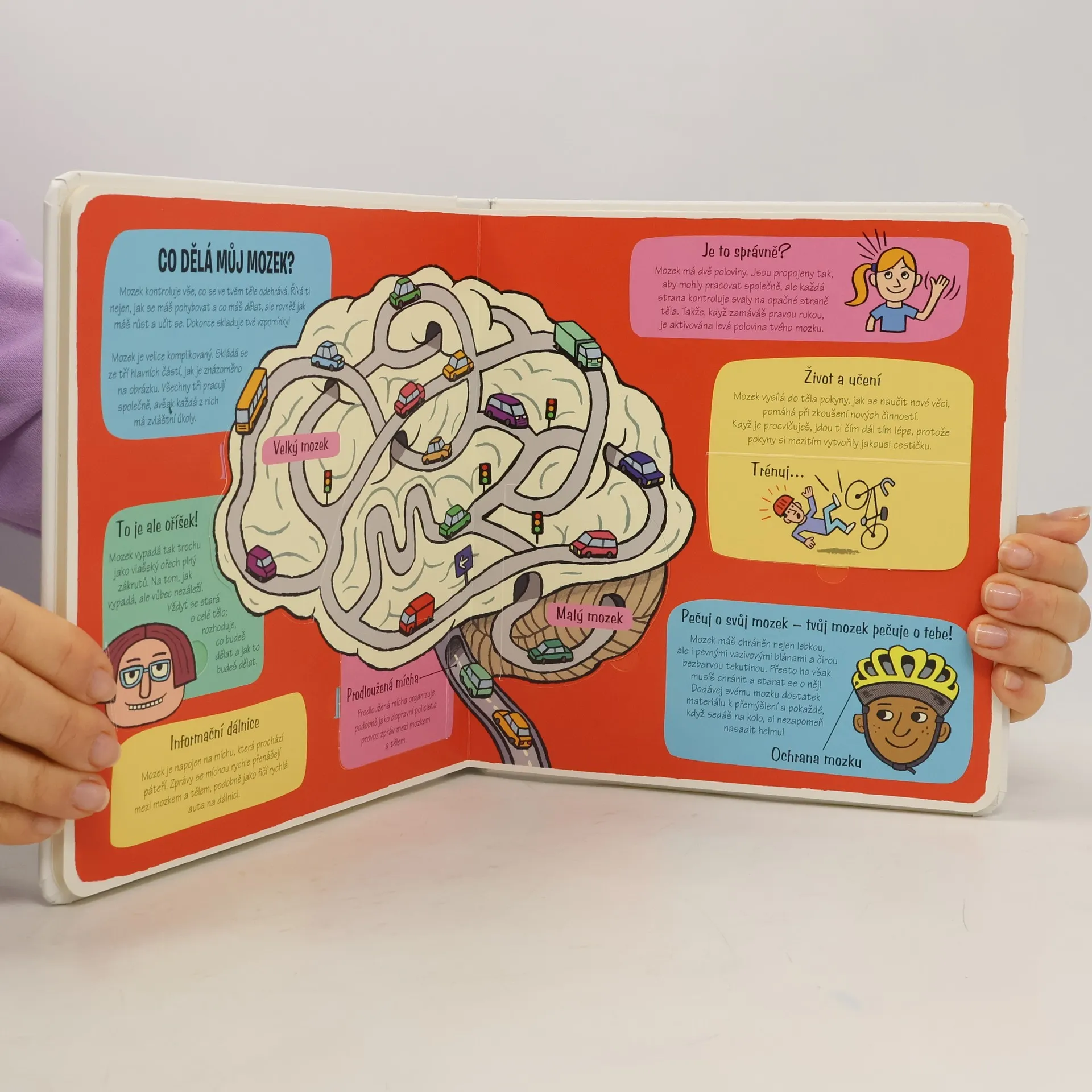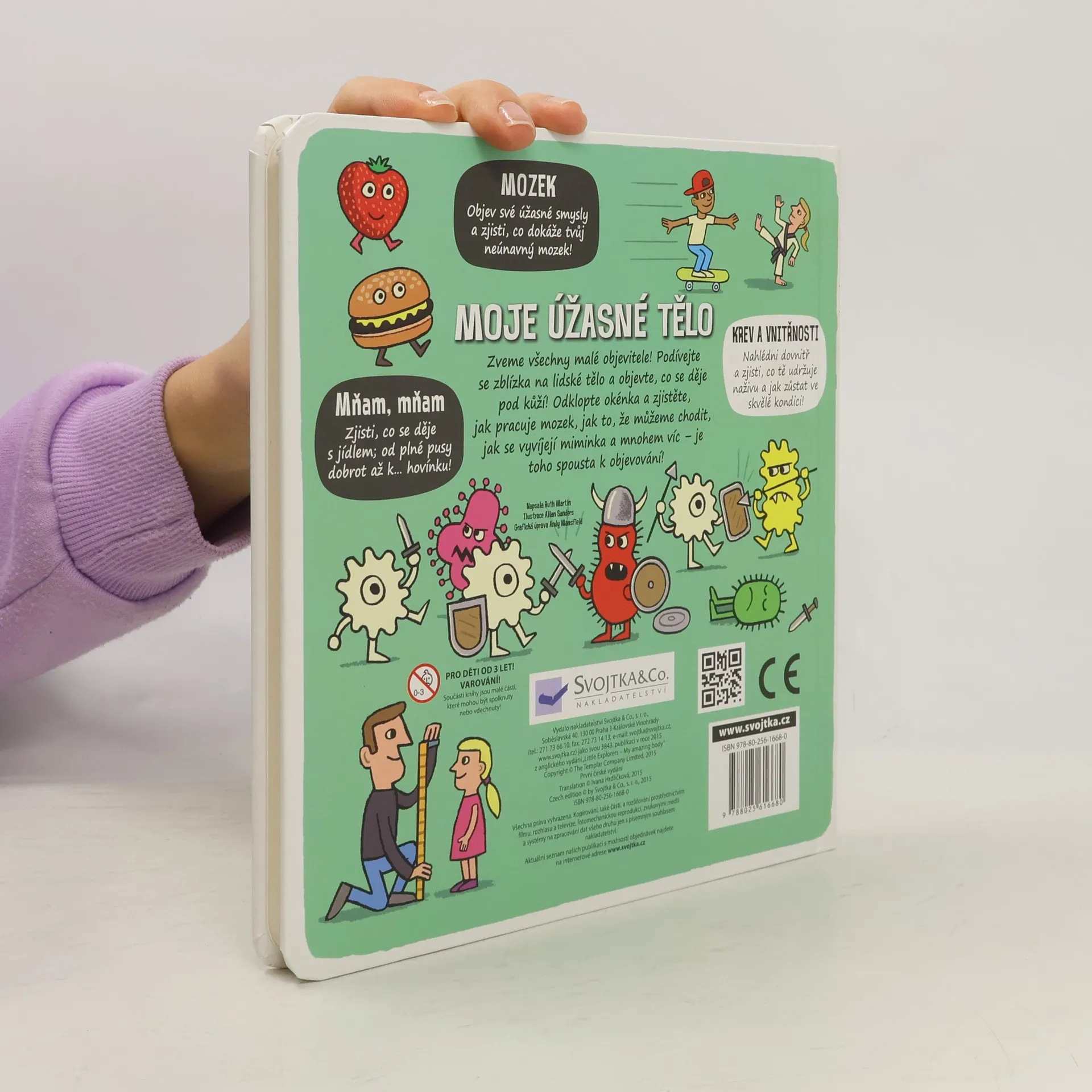 Zveme všechny malé průzkumníky k objevování - otevřete více než 50 okének a prohlédněte si lidské tělo ze všech stran! Je toho spousta k objevování! Nohy, ruce, kostra, nos, oči, srdce, plíce, žaludek… Zveme všechny malé průzkumníky k objevování! Podívejte se zblízka do lidského těla a zjistěte, co se děje pod kůží! Otevřete více než 50 okének a nahlédněte dovnitř, abyste viděli, co lidské tělo udržuje na živu a v dobré kondici. Zjistěte, co se děje s jídlem v trávicím traktu – od plné pusy dobrot až k… hovínku! Objevte úžasné smysly a poznejte, co dokáže neúnavný mozek! Zjistěte, jak je možné, že můžeme chodit, jak se v maminčině bříšku vyvíjí miminko a mnohem, mnohem víc – je toho přece spousta k objevování!
