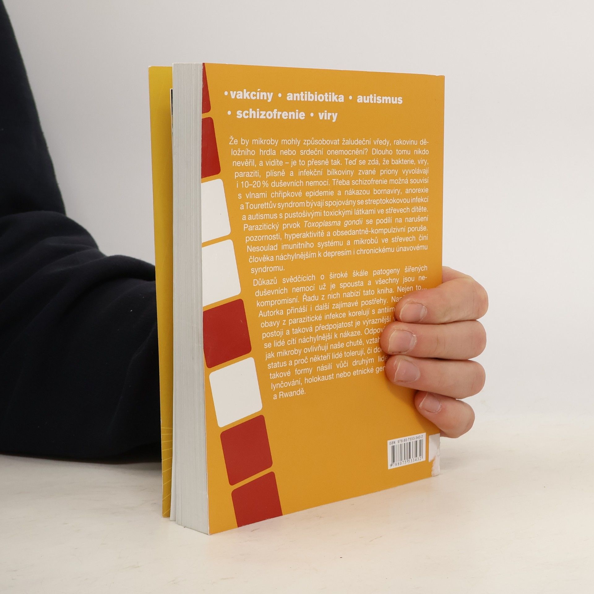 Že by mikroby mohly způsobovat žaludeční vředy, rakovinu děložního hrdla nebo srdeční onemocnění? Dlouho tomu nikdo nevěřil, a vidíte – je to přesně tak. Teď se zdá, že bakterie, viry, paraziti, plísně a infekční bílkoviny zvané priony vyvolávají i 10–20 % duševních nemocí. Třeba schizofrenie možná souvisí s vlnami chřipkové epidemie a nákazou bornaviry, anorexie a Tourettův syndrom bývají spojovány se streptokokovou infekcí a autismus s pustošivými toxickými látkami ve střevech dítěte. Parazitický prvok Toxoplasma gondii se podílí na narušení pozornosti, hyperaktivitě a obsedantně-kompulzivní poruše. Nesoulad imunitního systému a mikrobů ve střevech činí člověka náchylnějším k depresím i chronickému únavovému syndromu. Důkazů svědčících o široké škále patogeny šířených duševních nemocí už je spousta a všechny jsou nekompromisní. Řadu z nich nabízí tato kniha. Nejen to… Autorka přináší i další zajímavé postřehy. Například že obavy z parazitické infekce korelují s antiimigrantskými postoji a taková předpojatost je výraznější v době, kdy se lidé cítí náchylnější k nákaze. Odpovídá i na otázky, jak mikroby ovlivňují naše chutě, vztahy a společenský status a proč někteří lidé tolerují, či dokonce podporují takové formy násilí vůči druhým lidem, jako jsou lynčování, holokaust nebo etnické genocidy v Bosně a Rwandě.