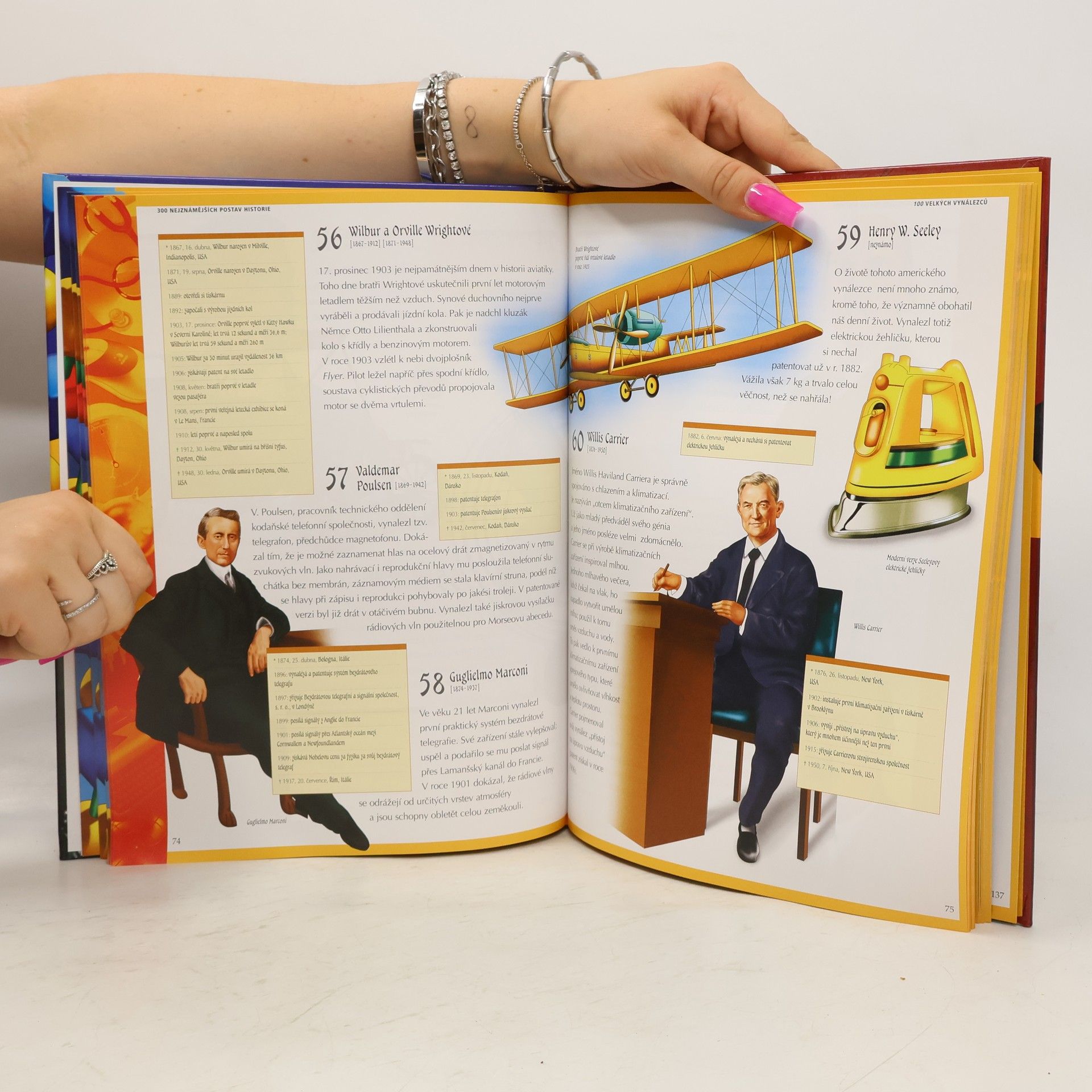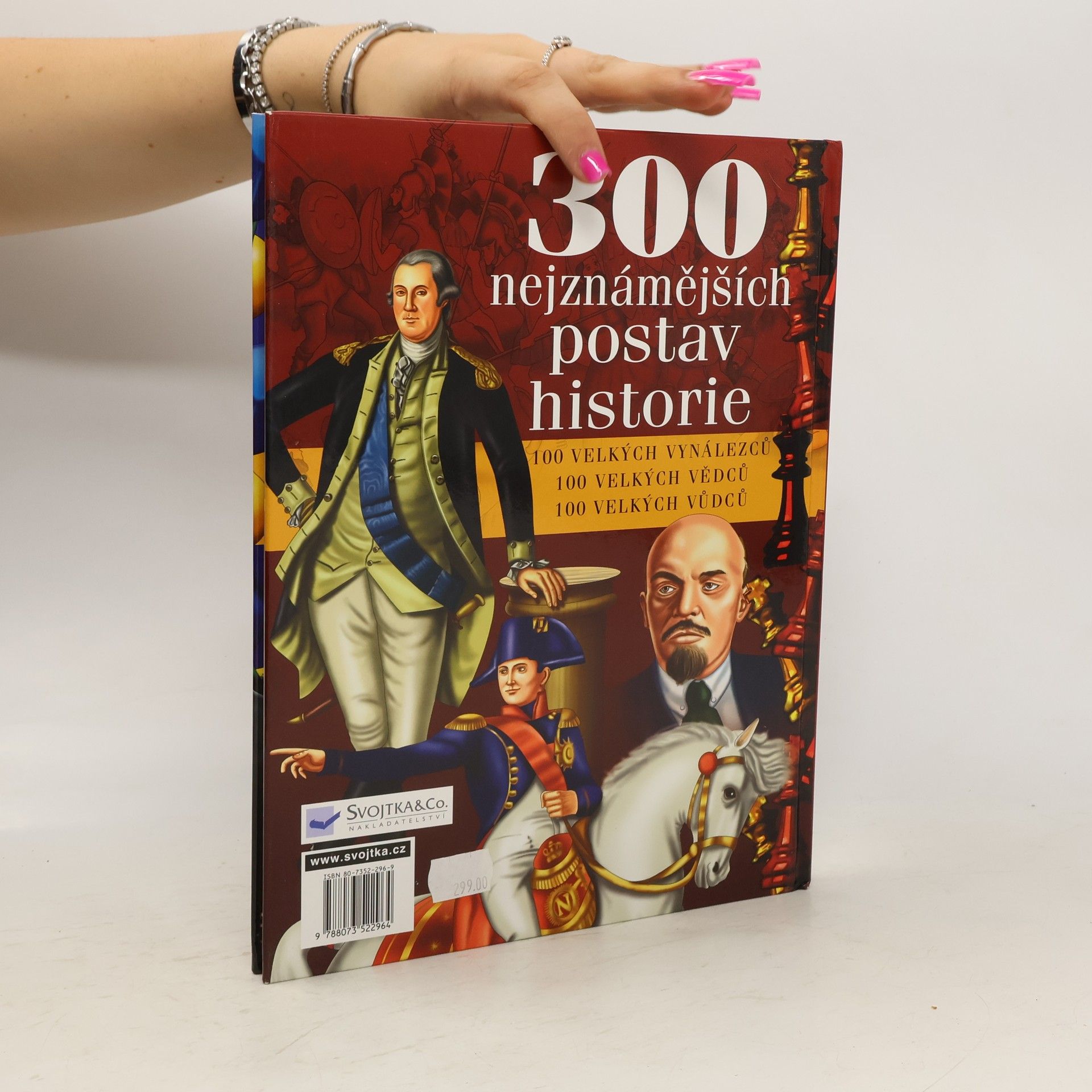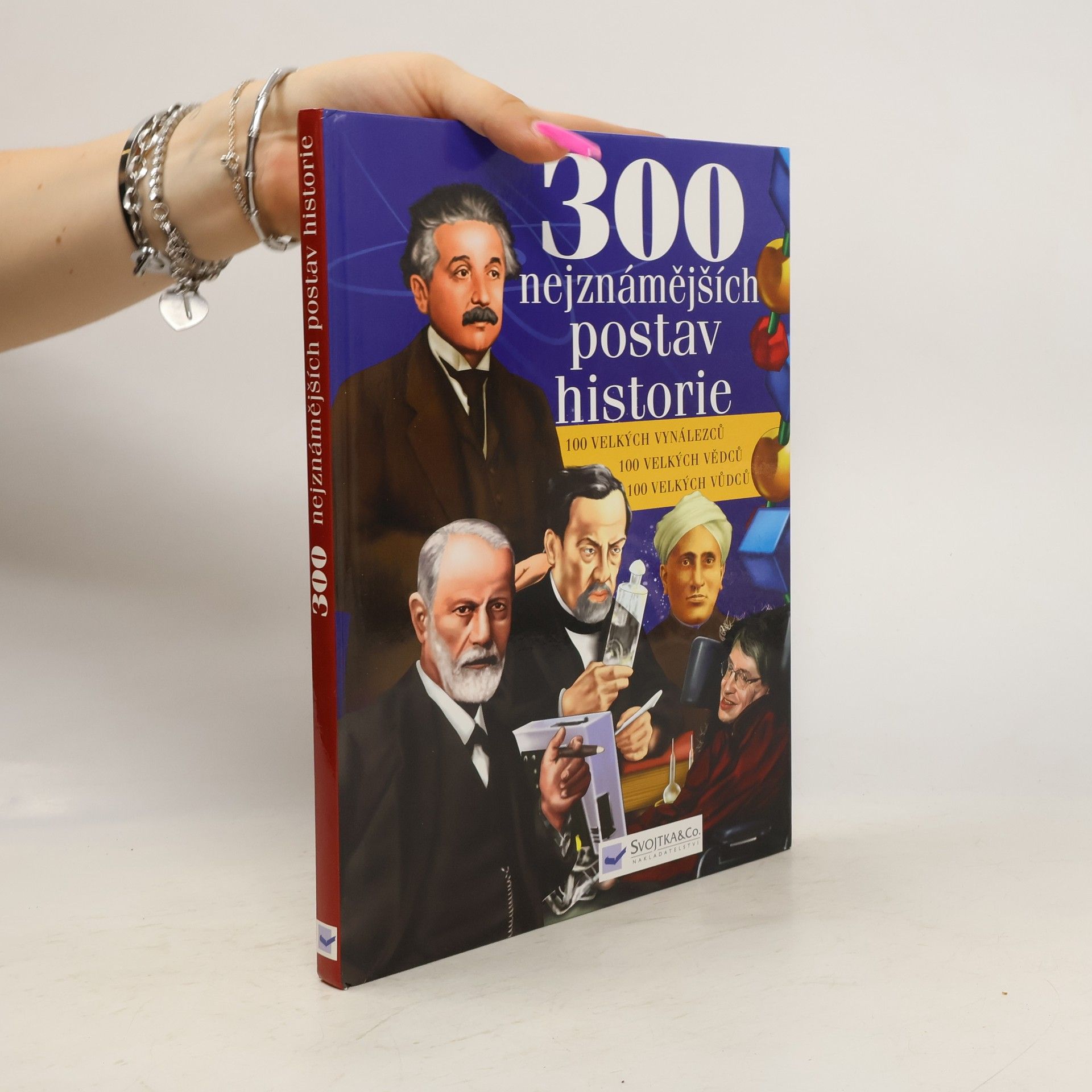 Tato ilustrovaná publikace nabízí miniportréty 100 velkých vědců, 100 velkých vynálezců - i některé slavné české vědce a vynálezce - a 100 velkých vůdců. V závěru knihy je zařazen slovníček pojmů a abecední rejstřík osobností.