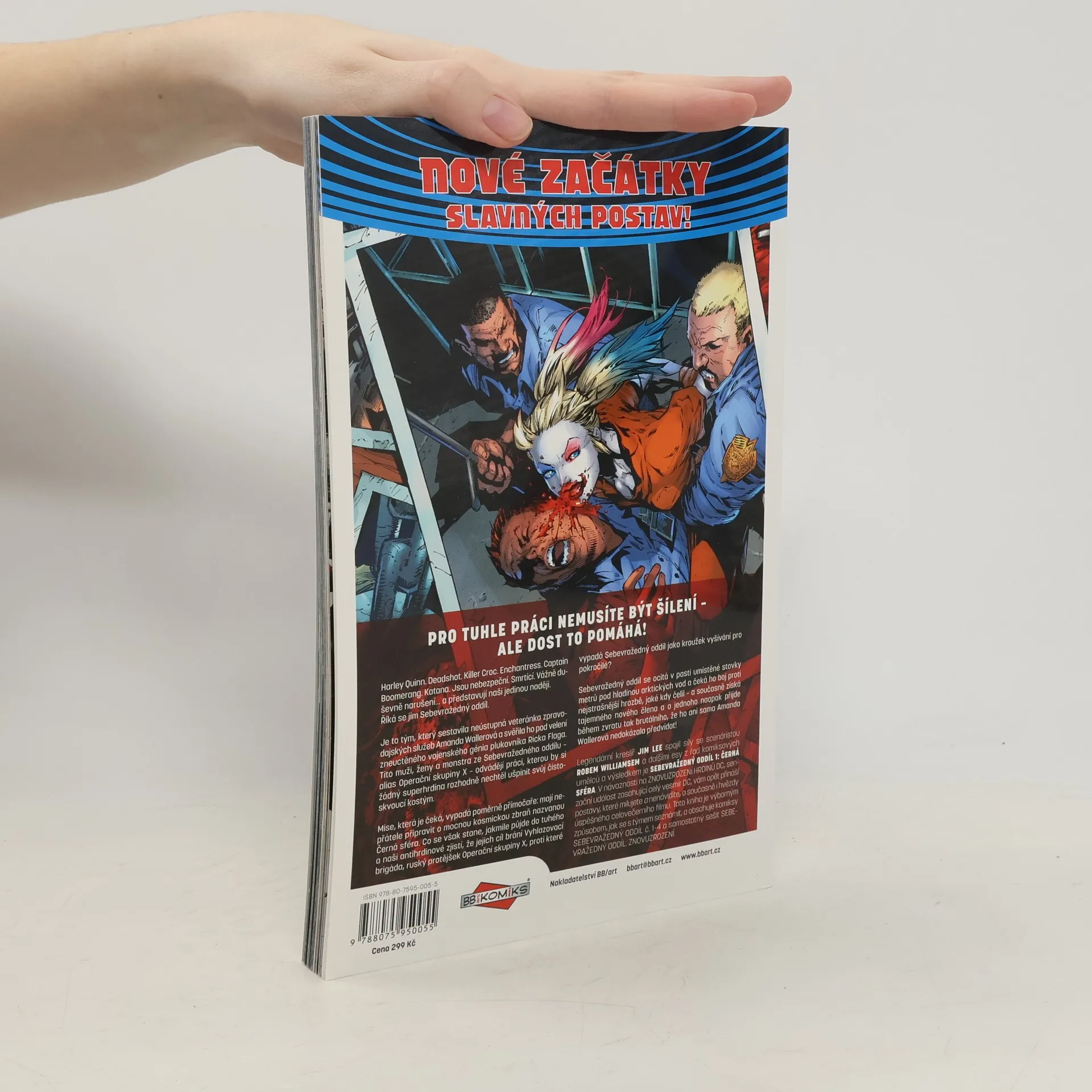 PRO TUHLE PRÁCI NEMUSÍTE BÝT ŠÍLENÍ – ALE DOST TO POMÁHÁ! Harley Quinn. Deadshot. Killer Croc. Enchantress. Captain Boomerang. Katana. Jsou nebezpeční. Smrtící. Vážně duševně narušení… a představují naši jedinou naději. Říká se jim Sebevražedný oddíl. Je to tým, který sestavila neústupná veteránka zpravodajských služeb Amanda Wallerová a svěřila ho pod velení zneuctěného vojenského génia plukovníka Ricka Flaga. Tito muži, ženy a monstra ze Sebevražedného oddílu – alias Operační skupiny X – odvádějí práci, kterou by si žádný superhrdina rozhodně nechtěl ušpinit svůj čistoskvoucí kostým. Mise, která je čeká, vypadá poměrně přímočaře: mají nepřátele připravit o mocnou kosmickou zbraň nazvanou Černá sféra. Co se však stane, jakmile půjde do tuhého a naši antihrdinové zjistí, že jejich cíl brání Vyhlazovací brigáda, ruský protějšek Operační skupiny X, proti které vypadá Sebevražedný oddíl jako kroužek vyšívání pro pokročilé? Sebevražedný oddíl se ocitá v pasti umístěné stovky metrů pod hladinou arktických vod a čeká ho boj proti nejstrašnější hrozbě, jaké kdy čelil – a současně získá tajemného nového člena a o jednoho naopak přijde během zvratu tak brutálního, že ho ani sama Amanda Wallerová nedokázala předvídat!