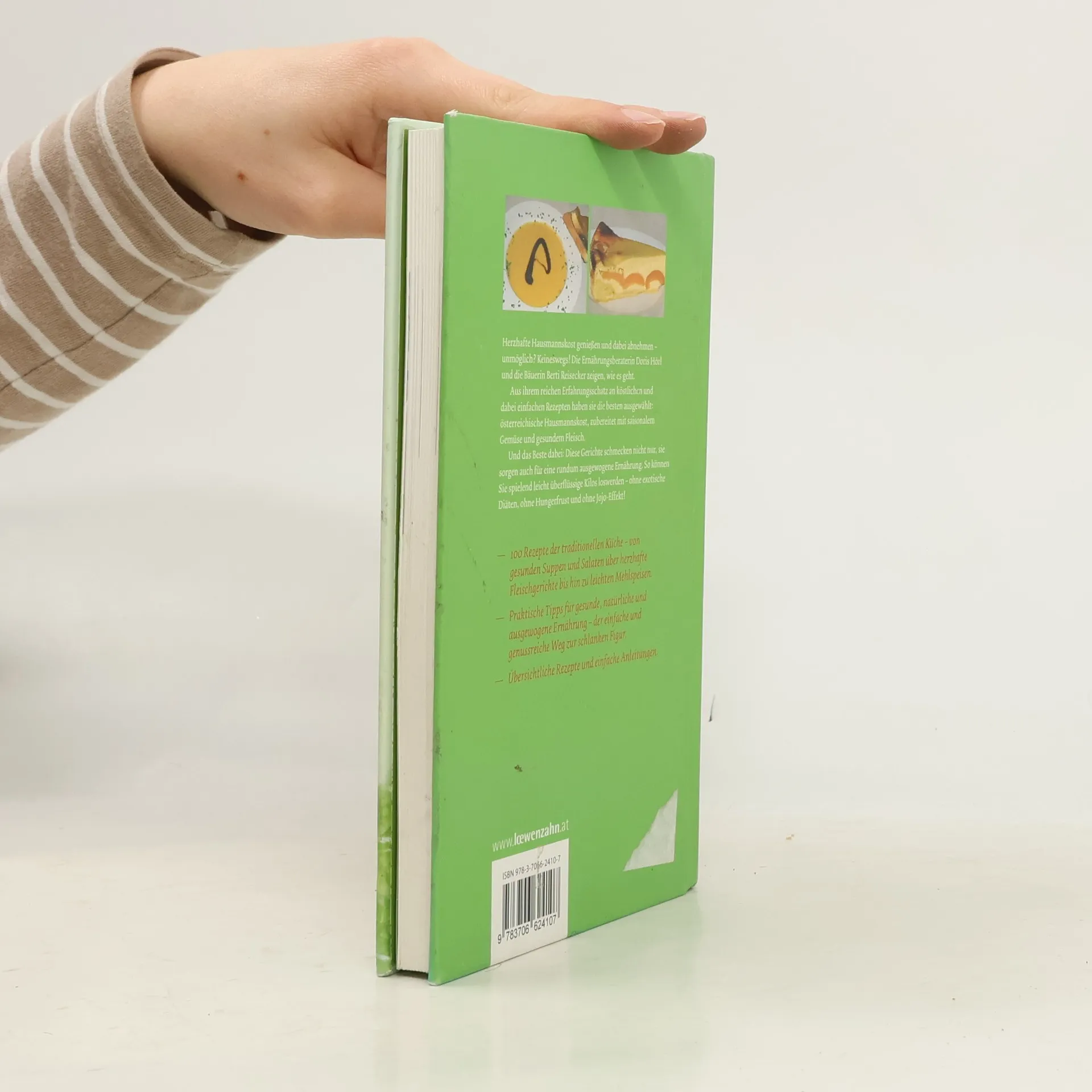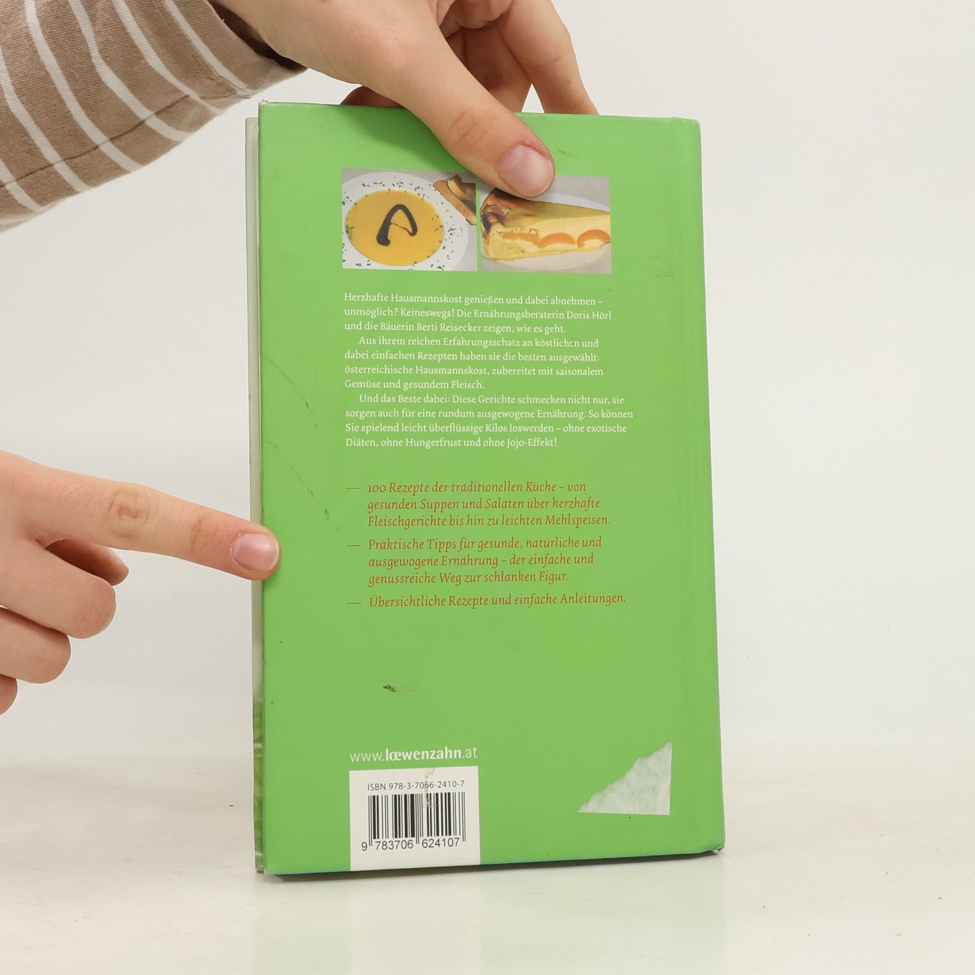 DER EINFACHE UND GENUSSREICHE WEG ZUR SCHLANKEN FIGUR! Herzhafte Hausmannskost genießen und dabei abnehmen - unmöglich? Keineswegs! Die Ernährungsberaterin Doris Hörl und die Bäuerin Berti Reisecker zeigen, wie es geht. Aus ihrem Erfahrungsschatz an köstlichen und einfachen Rezepten haben sie die besten ausgewählt: österreichische Hausmannskost, zubereitet mit saisonalem Gemüse und gesundem Fleisch. Diese Gerichte schmecken nicht nur, sie sorgen auch für eine ausgewogene Ernährung. So können Sie überflüssige Kilos loswerden - ohne exotische Diäten, ohne Hungerfrust und ohne Jojo-Effekt! 100 Rezepte der traditionellen Küche - von gesunden Suppen und Salaten über herzhafte Fleischgerichte bis hin zu leichten Mehlspeisen - bodenständig und abwechslungsreich durch saisonale und regionale Zutaten. Praktische Tipps für gesunde, natürliche Ernährung, übersichtliche Rezepte und einfache Anleitungen machen das Abnehmen leicht. Einige psychologische Tricks und Wissenswertes über Ess-Typen helfen zusätzlich. „Gesundes Essen“ heißt, bewusst und ursprünglich zu kochen! Freuen Sie sich über gesunde Hausmannskost - durch die richtige Zubereitung können Sie Ihr Übergewicht abbauen und Ihr Wohlfühlgewicht halten. Frisch zubereitete Speisen sind reich an Vitaminen und Mineralstoffen. Dieses Buch führt Sie Schritt für Schritt zu neuen Essgewohnheiten!
