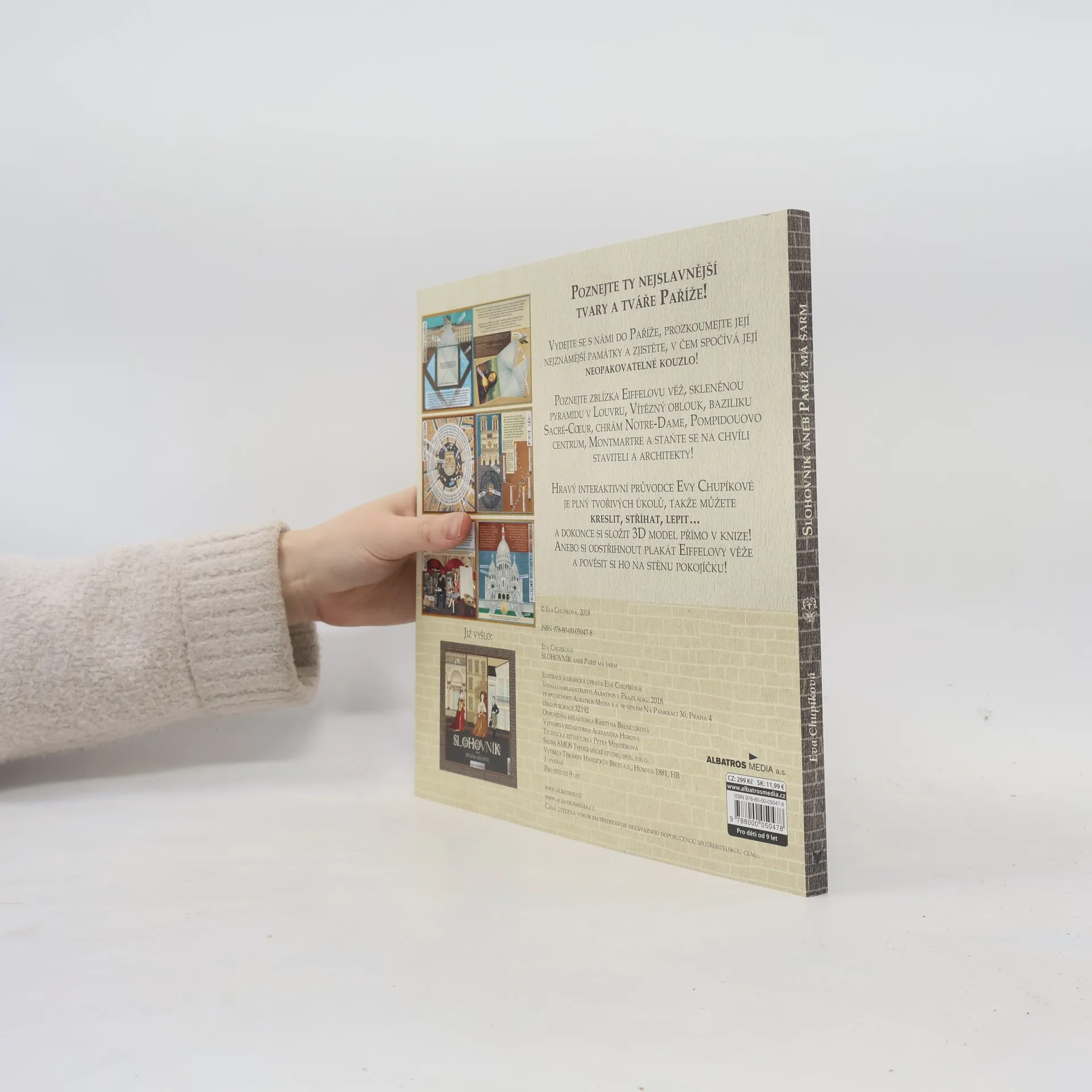 Vydejte se s námi do Paříže, prozkoumejte její nejznámější památky a zjistěte, v čem spočívá její neopakovatelné kouzlo! Poznejte zblízka Eiffelovu věž, skleněnou pyramidu v Louvru, Vítězný oblouk, baziliku Sacré-Coeur, chrám Notre-Dame, Pompiduovo centrum, Montmartre a staňte se na chvíli staviteli a architekty! Hravý interaktivní průvodce Evy Chupíkové je plný tvořivých úkolů, takže můžete kreslit, stříhat, lepit… a dokonce si složit 3D model přímo v knize! Anebo si odstřihnout plakát Eiffelovy věže!