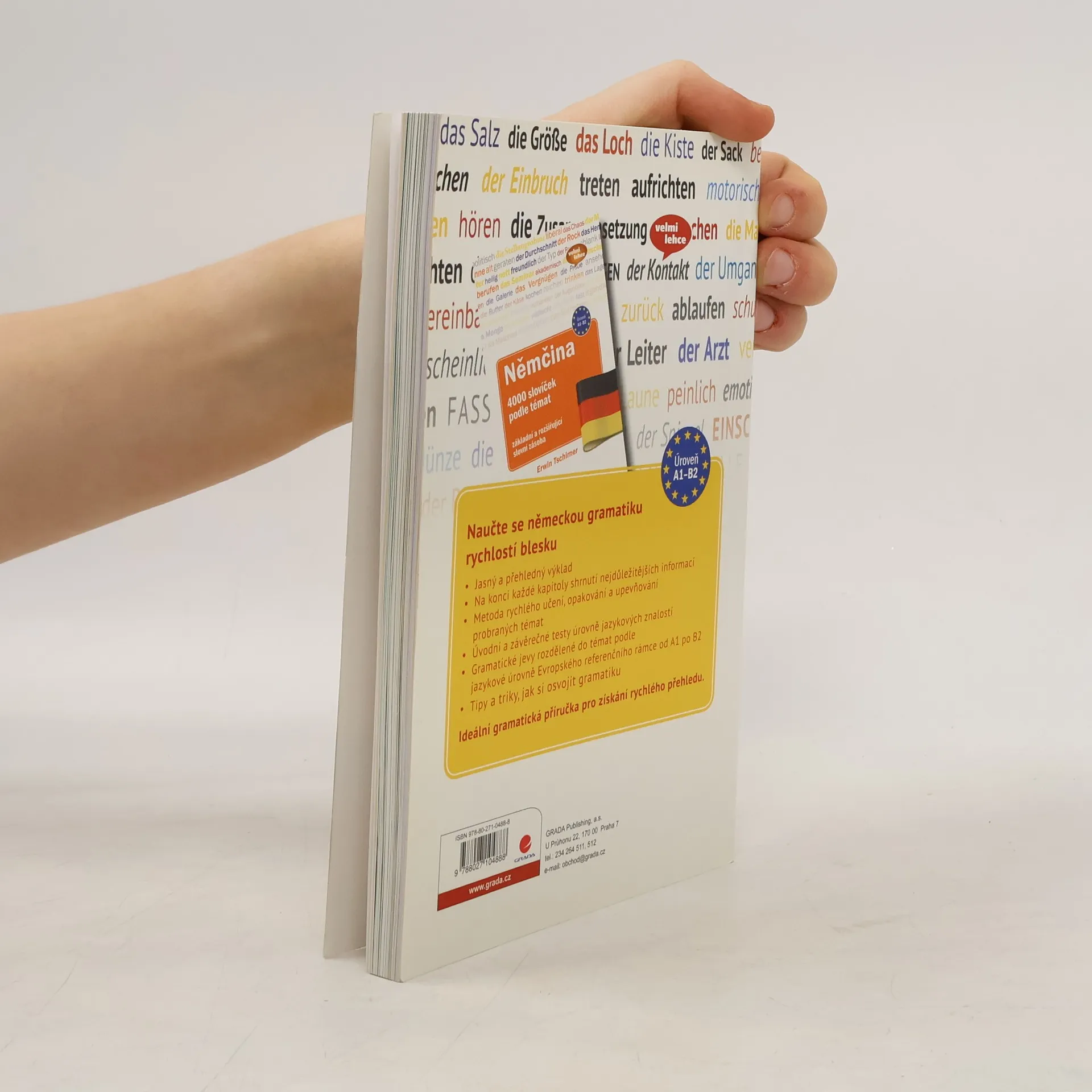 Přehledně a logicky seřazené gramatické jevy, které se můžete učit, nebo jen opakovat, shrnují vše, co pro běžnou komunikaci v němčině potřebujete. Vypracováním úvodního a závěrečného testu zjistíte, jakých pokroků jste dosáhli. Na konci každé části je rekapitulace učiva. Kniha je vhodná pro úroveň znalosti jazyka A1-B2 a každá část textu má označení, které úrovně se týká. Na webu Grada.cz si u této knihy můžete stáhnout soubor s doplňkovými cvičeními.