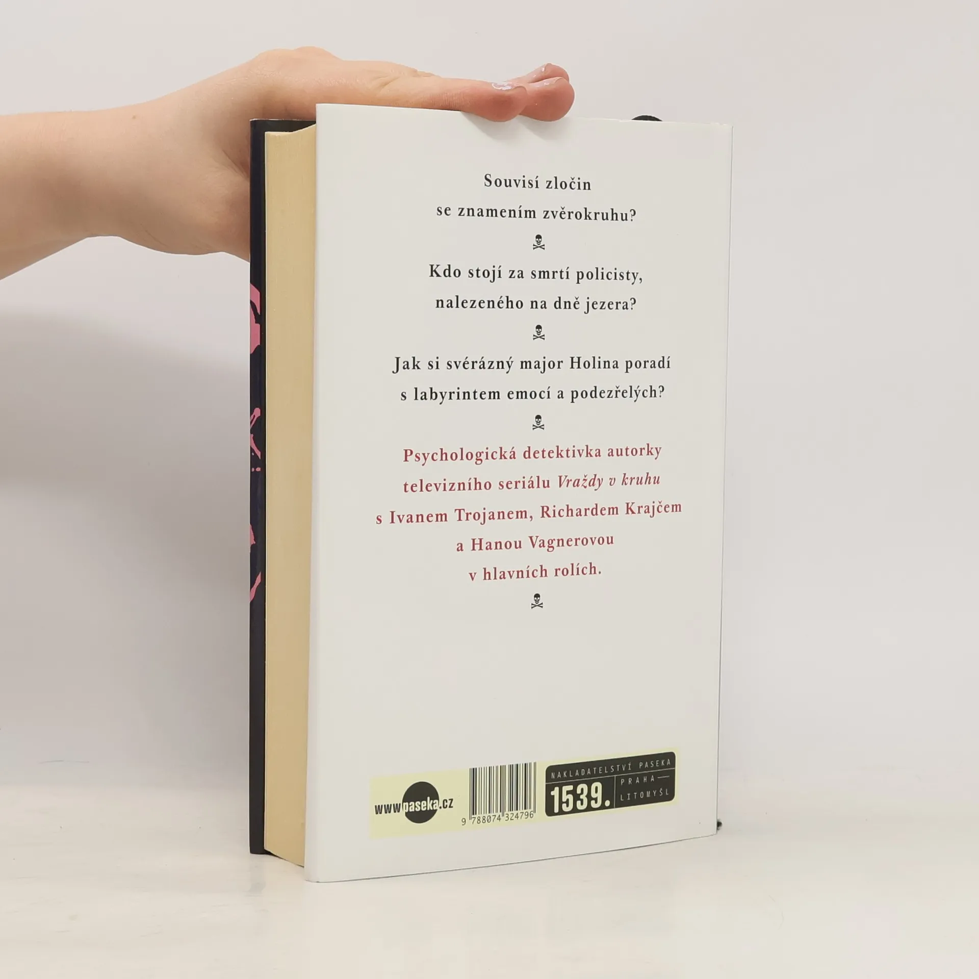 Kolik motivů může mít jedna vražda? Kolem mrtvého z jezera se vynoří plejáda svérázných osob: od pěstitele konopí přes renomovaného architekta, promiskuitního policistu až po tajemnou Kubánku. S neortodoxním kriminalistou Holinou se budeme prodírat labyrintem vyšetřování a přitom nahlédneme hluboko do životů propojených pletivem silných emocí a rozporuplných činů. Kriminální román Ivy Procházkové je předehrou seriálu Vraždy v kruhu s Ivanem Trojanem, Richardem Krajčem a Hanou Vagnerovou v hlavních rolích, jehož vysílání chystá Česká televize od ledna 2015. V románu poznáváme hrdiny s časovým předstihem dvou let, sledujeme začátky jejich vztahů, jsme u samých kořenů jejich pozdějších televizních osudů.