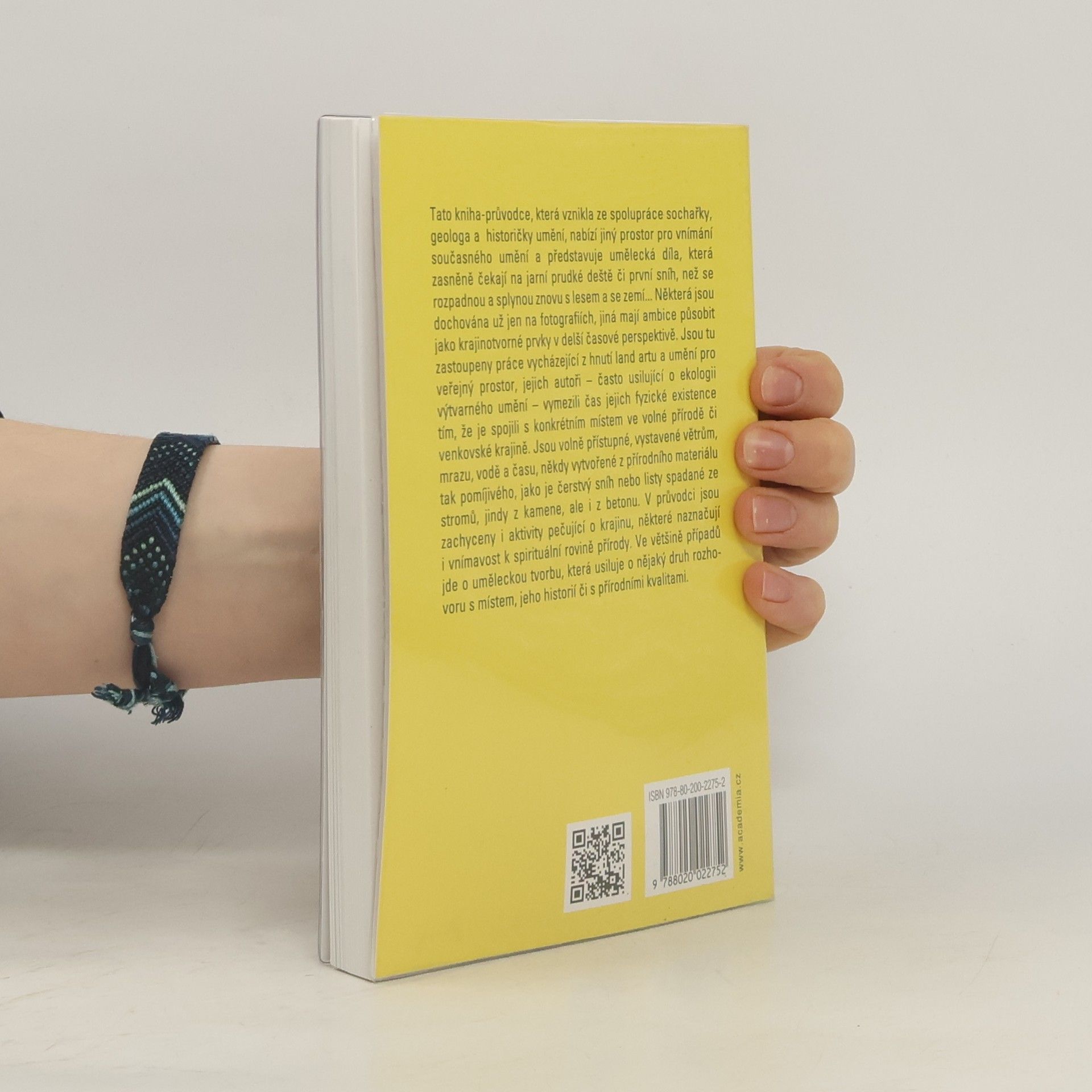 Tato kniha-průvodce, která vznikla ze spolupráce sochařky, geologa a historičky umění, nabízí jiný prostor pro vnímání současného umění a představuje umělecká díla, která zasněně čekají na jarní prudké deště či první sníh, než se rozpadnou a splynou znovu s lesem a se zemí... Některá jsou dochována už jen na fotografiích, jiná mají ambice působit jako krajinotvorné prvky v delší časové perspektivě. Jsou tu zastoupeny práce vycházející z hnutí land artu a umění pro veřejný prostor, jejich autoři – často usilující o ekologii výtvarného umění – vymezili čas jejich fyzické existence tím, že je spojili s konkrétním místem ve volné přírodě či venkovské krajině. Jsou volně přístupné, vystavené větrům, mrazu, vodě a času, někdy vytvořené z přírodního materiálu tak pomíjivého, jako je čerstvý sníh nebo listy spadané ze stromů, jindy z kamene, ale i z betonu. V průvodci jsou zachyceny i aktivity pečující o krajinu, některé naznačují i vnímavost k spirituální rovině přírody. Ve většině případů jde o uměleckou tvorbu, která usiluje o nějaký druh rozhovoru s místem, jeho historií či s přírodními kvalitami.